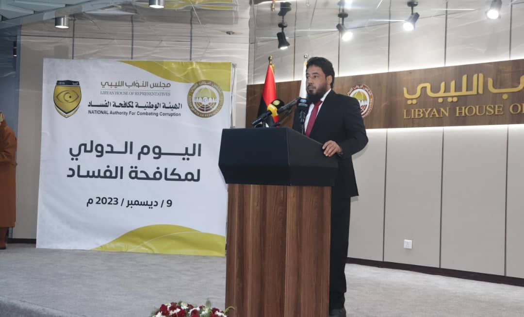 من جهته أكد النائب الثاني لرئيس مجلس النواب «مصباح دومة» في كلمته أن مجلس النواب يبذل في قصارى جهده لمكافحة الفساد الذي تفشى في أركان الدولة بكافة مستوياتها.