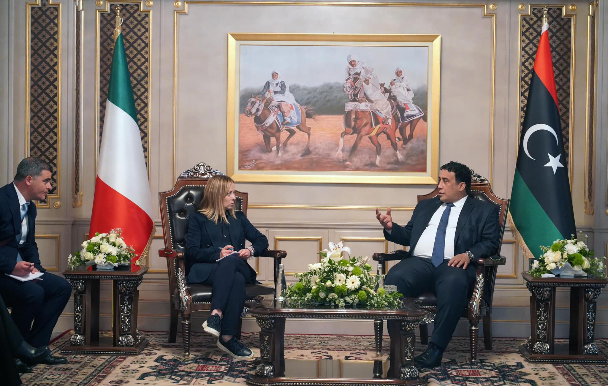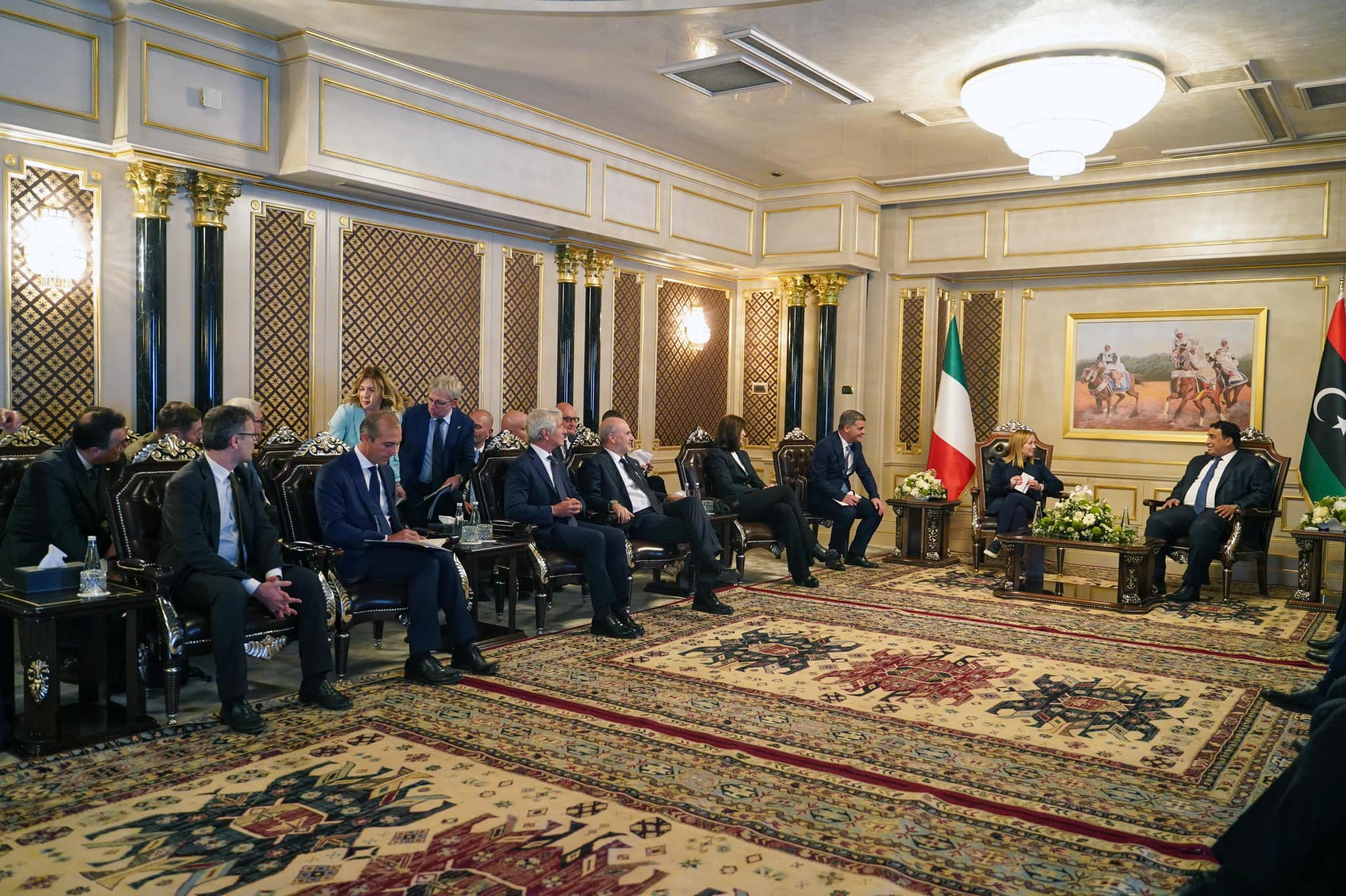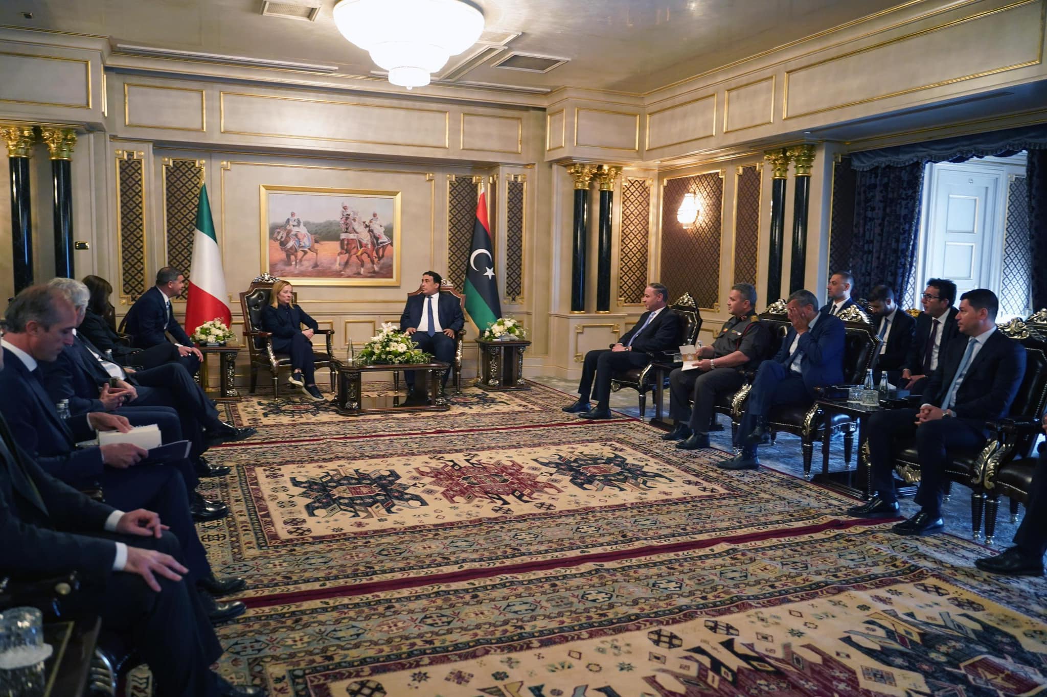 طرابلس 07 مايو 2024 (الأنباء الليبية) – بحث رئيس المجلس الرئاسي محمد المنفي اليوم الثلاثاء، مع رئيسة الوزراء الإيطالية جيورجيا ميلوني والوفد الوزاري المرافق لها، ملفات التعليم والإعمار والهجرة.