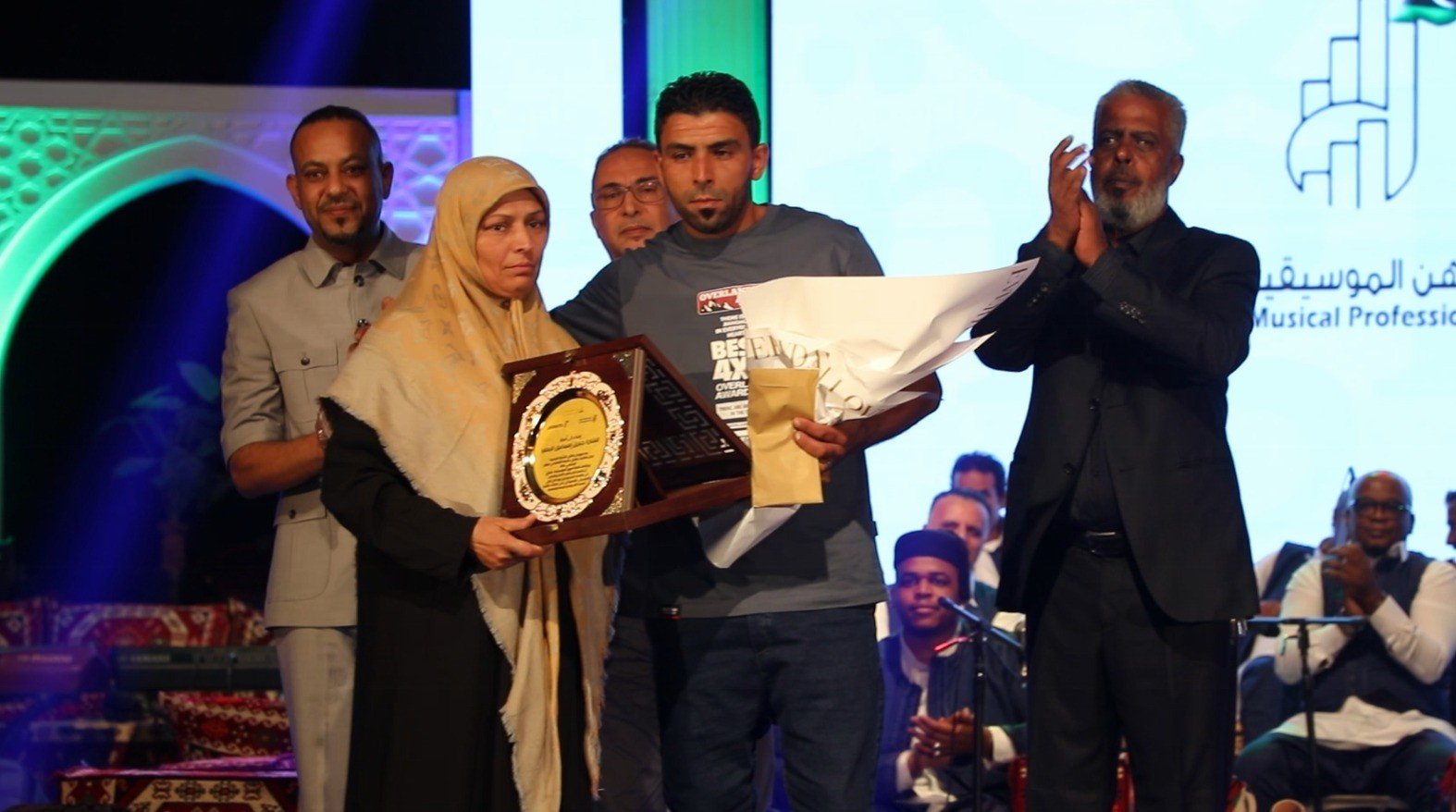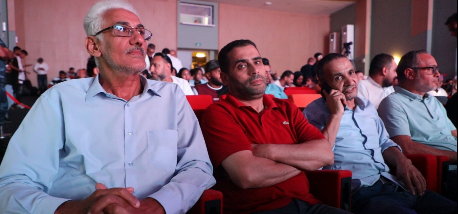 وأقيم الحفل على خشبة المسرح الشعبي في بنغازي بحضور شخصيات أبرزهم رئيس لجنة الإعلام والثقافة والمجتمع المدني بمجلس النواب جلال الشويهدي، الذي يعد من أبرز الداعمين للمهرجان.