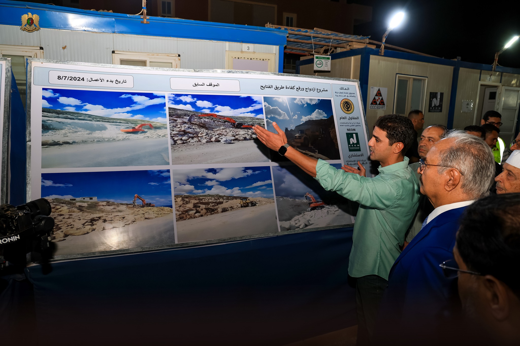 وشملت الجولة زيارة عدد من المرافق الحيوية المستهدفة بالإعمار، بما في ذلك مستشفى الهريش، ومواقع إنشاء الجسور في المدينة، ومسجد الصحابة الذي يحمل دلالة خاصة كونه أحد أهم المساجد في درنة ومنطقة الجبل الأخضر، ويعتبر معلماً تاريخياً ودينياً بارزاً.
