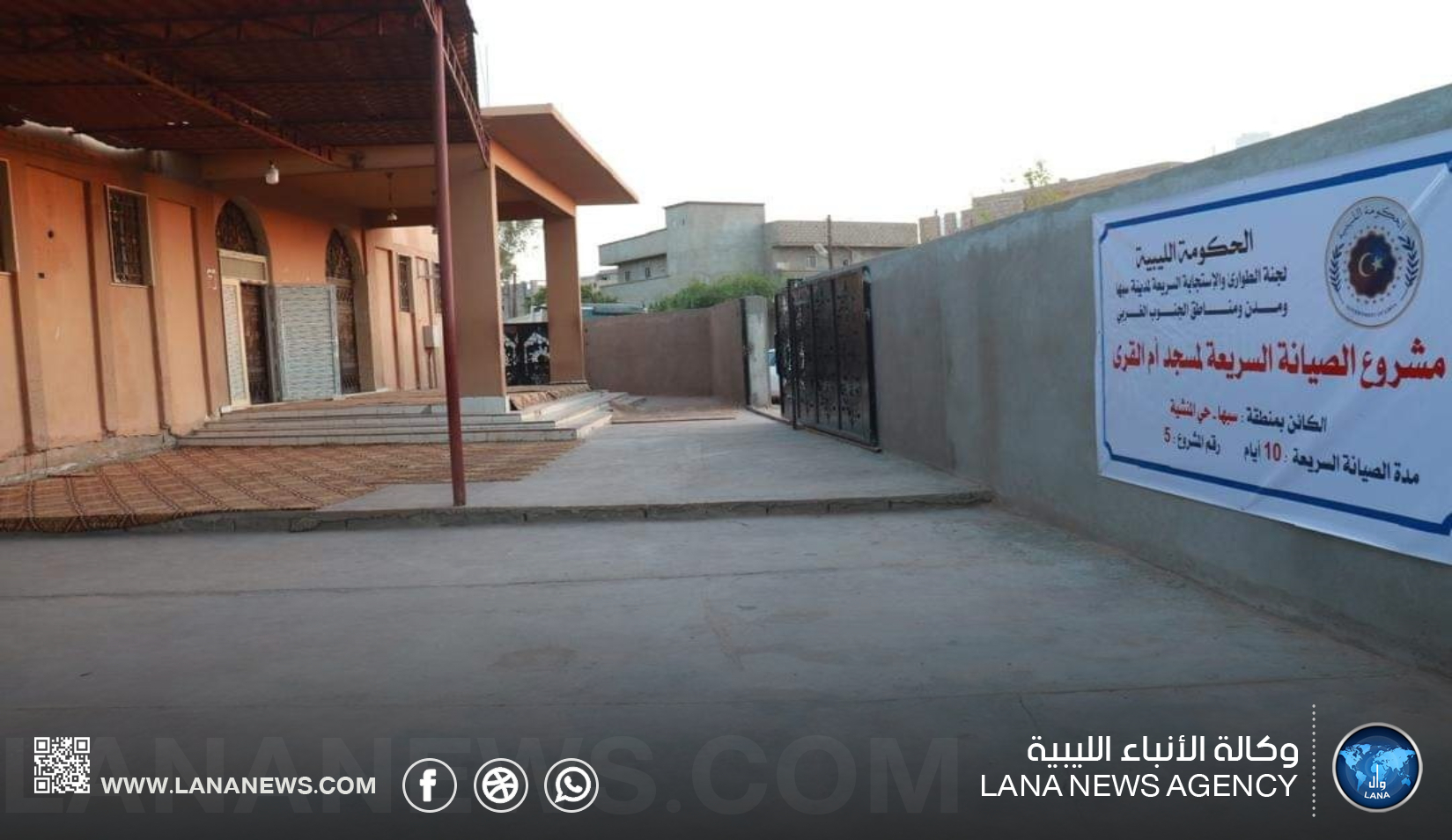 حضر افتتاح المسجد يوم أمس، رؤساء اللجان بلجنة الطوارئ والاستجابة السريعة، وأعيان ووجهاء وأهالي منطقة حي التضامن، يأتي ضمن أعمال الصيانة المستعجلة لعدد من المساجد ومنارات تحفيظ القرآن الكريم المتضررة من جراء الأمطار الغزيرة والسيول التي تعرضت لها مدينة سبها مؤخرًا. (الأنباء الليبية – سبها) ر ت