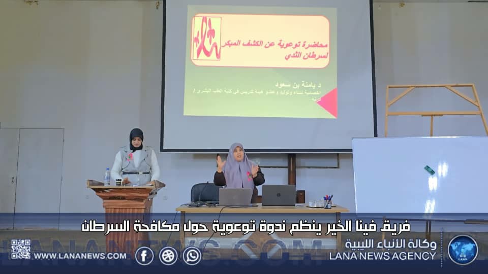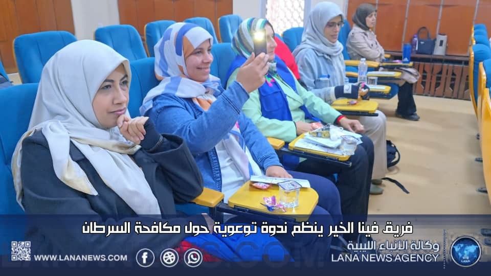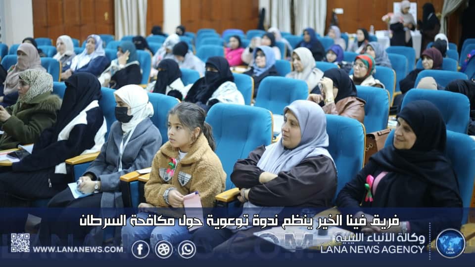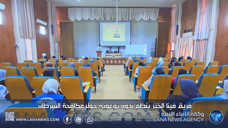 درنة 25 يناير 2025 (الأنباء الليبية) -نظم فريق فينا الخير ندوة توعوية حول مكافحة السرطان بمسرح كلية التقنية الطبية في درنة، بهدف رفع الوعي بمسببات مرض السرطان وطرق الوقاية منه، وشهدت الندوة حضورا من سيدات المجتمع المحلي، حيث تطرقت إلى أهمية التغذية الصحية والدعم النفسي لمكافحة المرض.