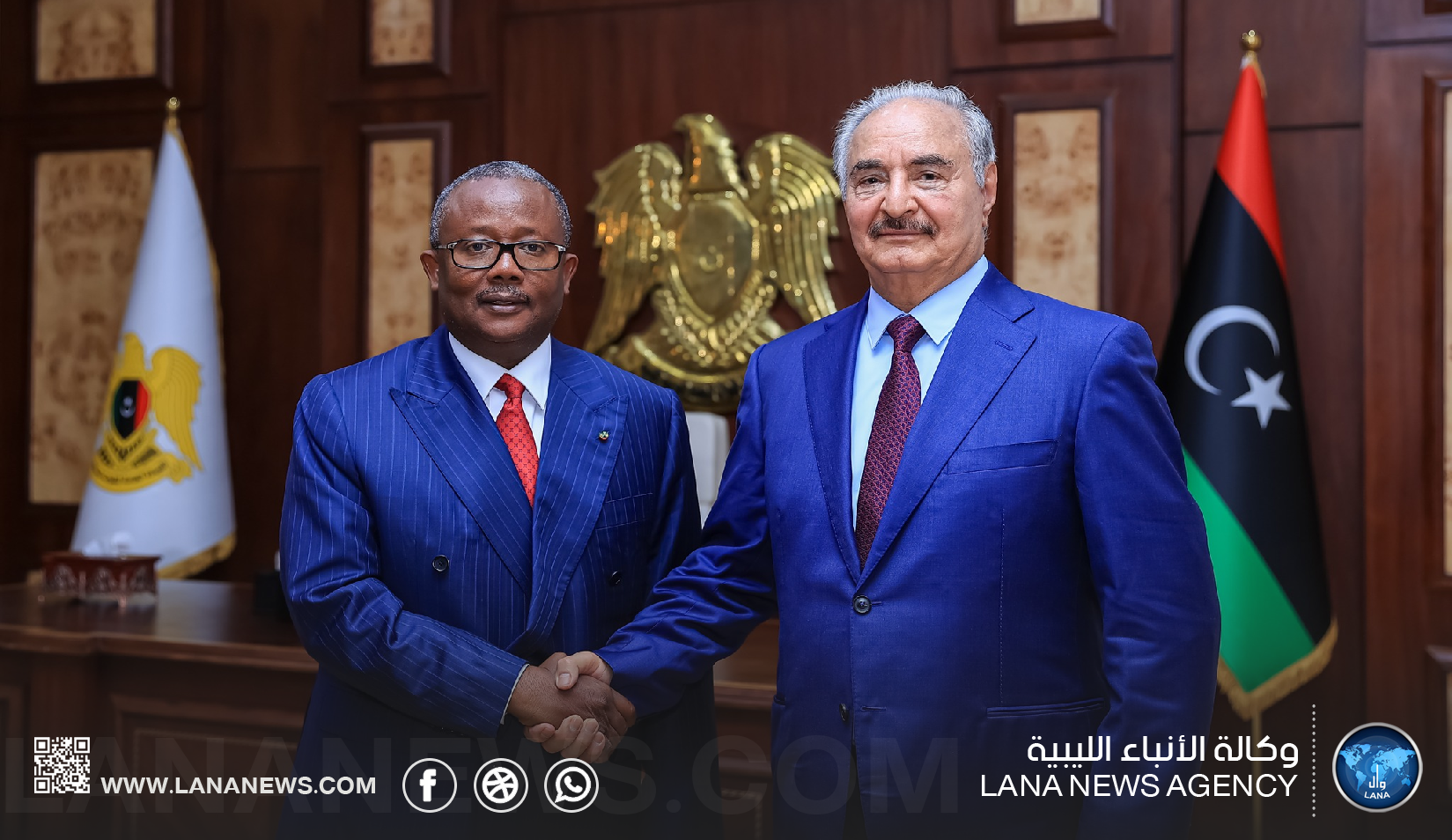 بنغازي 28 يناير 2025 (الأنباء الليبية) –استقبل القائد العام للقوات المسلحة، المشير خليفة بلقاسم حفتر، اليوم الثلاثاء، رئيس جمهورية غينيا بيساو، عُمر سيسوكو إمبالو، والوفد المرافق له، في مطار بنينا بمدينة بنغازي.