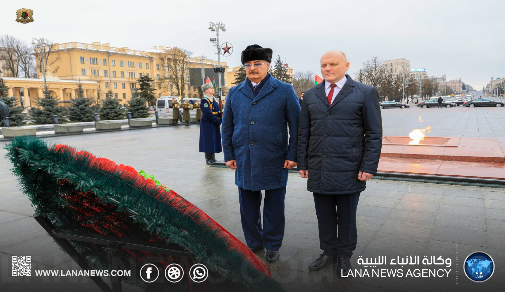 مينسك 18 فبراير 2025 (الأنباء الليبية) – قام القائد العام للقوات المسلحة المشير خليفة حفتر، مساء اليوم الثلاثاء، بزيارة النصب التذكاري للجندي المجهول في العاصمة بيلاروسيا، مينسك. النصب يُخلّد ذكرى الجنود الذين سقطوا في الحرب العالمية الثانية.