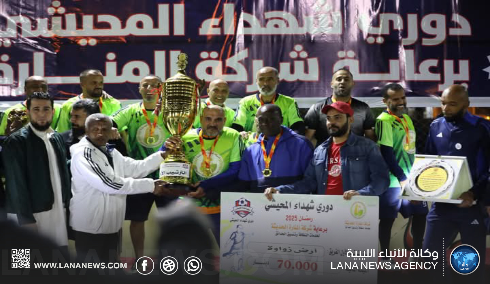 بنغازي 29 مارس 2025 (الأنباء الليبية) – تُوّج فريق أرض زواوة ببطولة دوري شهداء المحيشي في نسخته الثانية، بعد فوزه في المباراة النهائية التي جرت أمس في منطقة المحيشي.