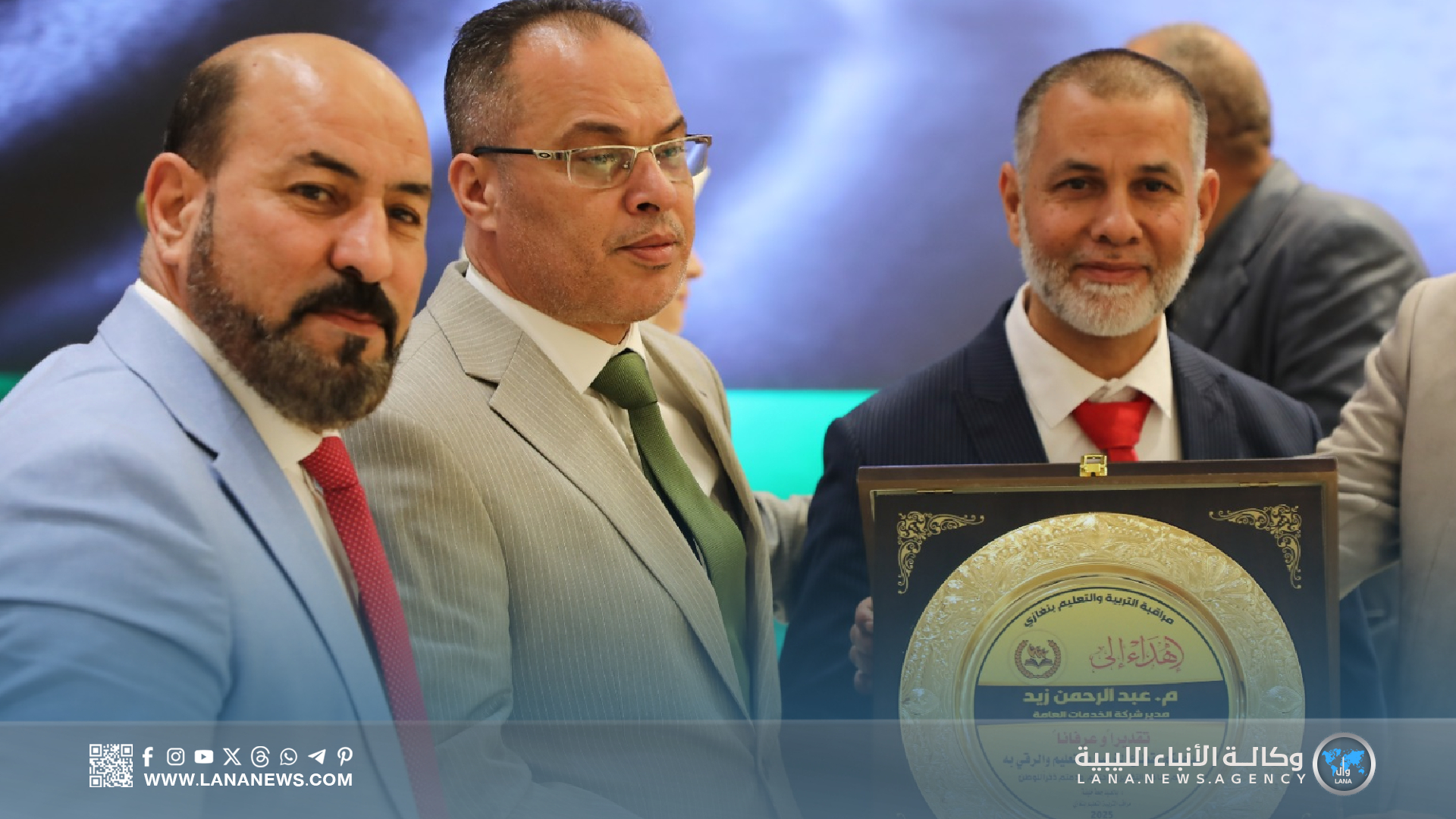 في ختام الحفل، كرمت مراقبة التربية والتعليم عدد من الشخصيات بدرع “العطاء والعرفان”، تقديرا لدورهم في دعم التعليم، ومن بينهم القائد العام للقوات المسلحة المشير خليفة حفتر، ورئيس أركان القوات البرية فريق أول صدام خليفة، ورئيس أركان الوحدات الأمنية فريق أول خالد خليفة بلقاسم، ورئيس الحكومة الليبية أسامة حماد، ووزير التربية جمعة اجديد، ورئيس جهاز الأمن الداخلي فريق أسامة الدرسي، وعدد من المسؤولين في الدولة، وعدد من القنوات والوسائل الإعلامية. (الأنباء الليبية بنغازي) س خ.