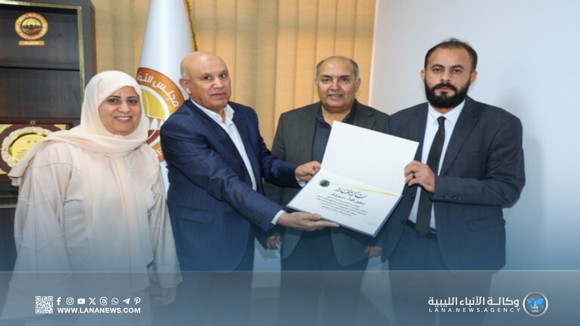 وحضر حفل التكريم نائب رئيس اللجنة سلطنة المسماري، وعضو اللجنة محمد علي الواعر، إلى جانب النواب الصالحين عبد النبي وإبراهيم الزغيد، ورئيس ديوان المجلس عبد الله المصري الفضيل.