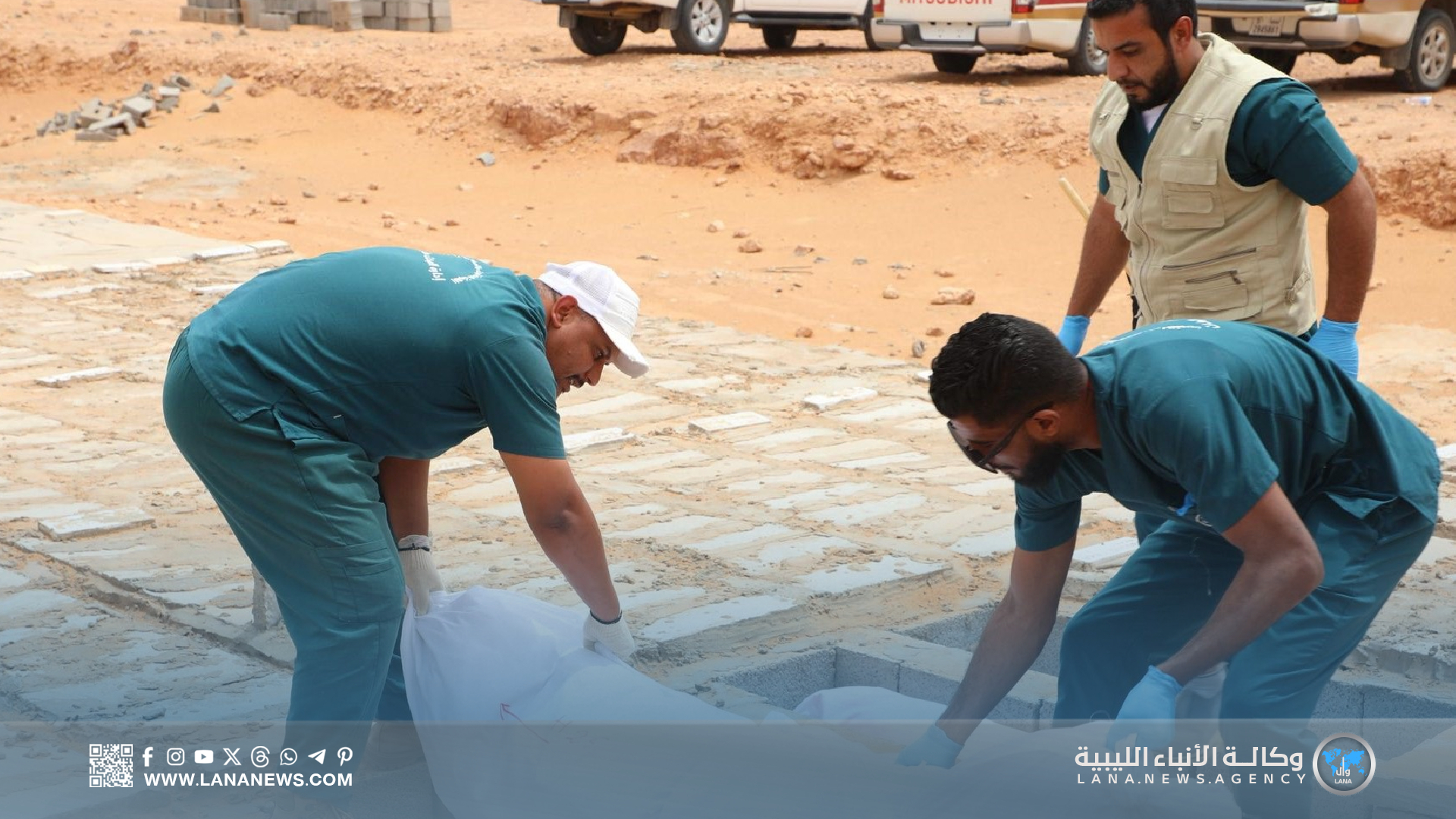 كما شرعت الفرق في اتخاذ الإجراءات القانونية المطلوبة للجثامين، حيث دفن 17 جثمانا بمقبرة أبو قرين في المدينة، مع إحالة تقرير المطابقة النهائي إلى مكتب النائب العام لمتابعة الإجراءات القانونية المتعلقة بالحادث. (الأنباء الليبية مصراتة) س خ