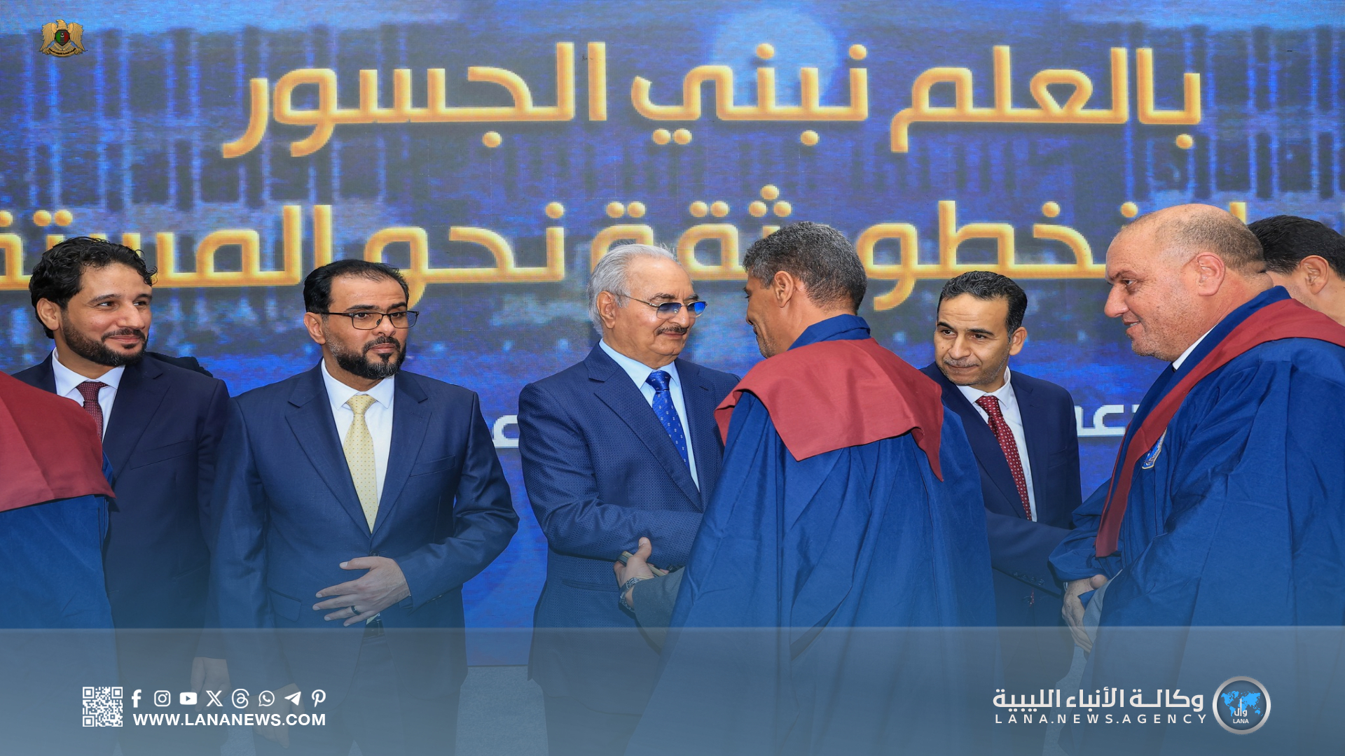 بنغازي 30 مايو 2025 (الأنباء الليبية) – أعلن القائد العام للقوات المسلحة، المشير خليفة حفتر، خلال حضوره لحفل تكريم أوائل خريجي جامعة بنغازي مساء أمس الخميس عن تعيين أوائل خريجي جامعة بنغازي كمعيدين وإيفاد الطلبة المتفوقين إلى الخارج لاستكمال دراساتهم العليا، مؤكداً أن هذه المبادرة تأتي ضمن دعم التميز الأكاديمي والاستثمار في الكفاءات الوطنية.