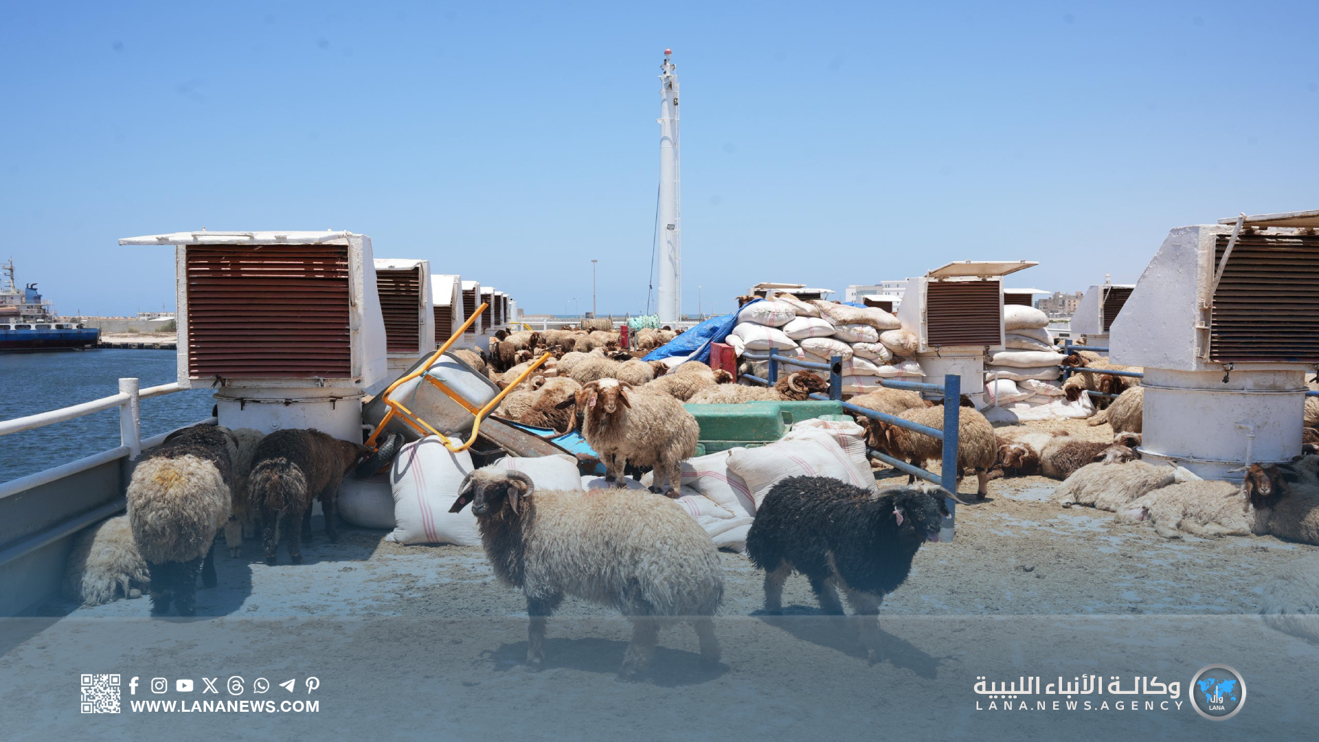 بنغازي 31 مايو 2025 (الأنباء الليبية) – وصلت اليوم السبت إلى ميناء جليانة بمدينة بنغازي، باخرة مُحّملة بشحنة كبيرة من المواشي ذات الجودة الممتازة والمطابقة للمواصفات المعتمدة، في إطار جهود الحكومة الليبية لتوفير الأضاحي بأسعار مُيّسرة تُناسب الأسر ذات الدخل المحدود.