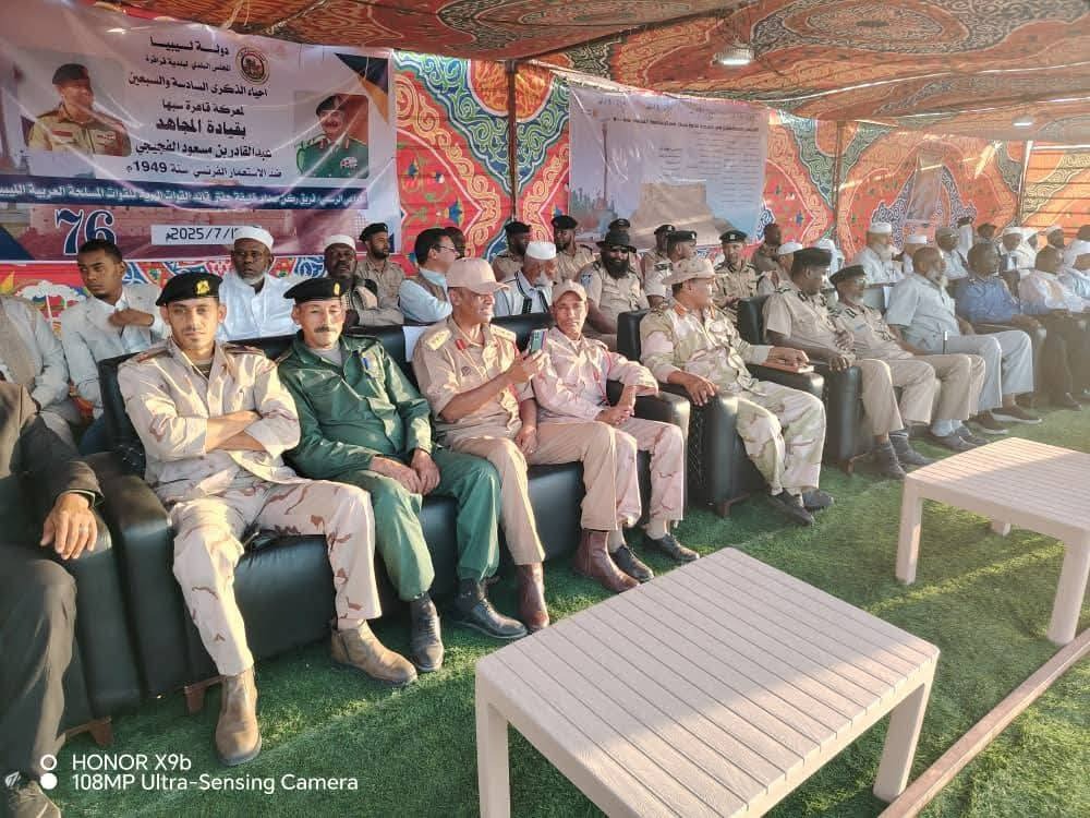 كما توجه بالشكر والتقدير إلى القيادة العامة للقوات المسلحة، بقيادة المشير خليفة حفتر، ورئيس أركان القوات البرية الفريق صدام حفتر، على دعمهم ورعايتهم لهذه المناسبة، مؤكدًا أن ذلك يعكس حرص القيادة على تعزيز الروح الوطنية والاعتزاز بالتاريخ الليبي المجيد.