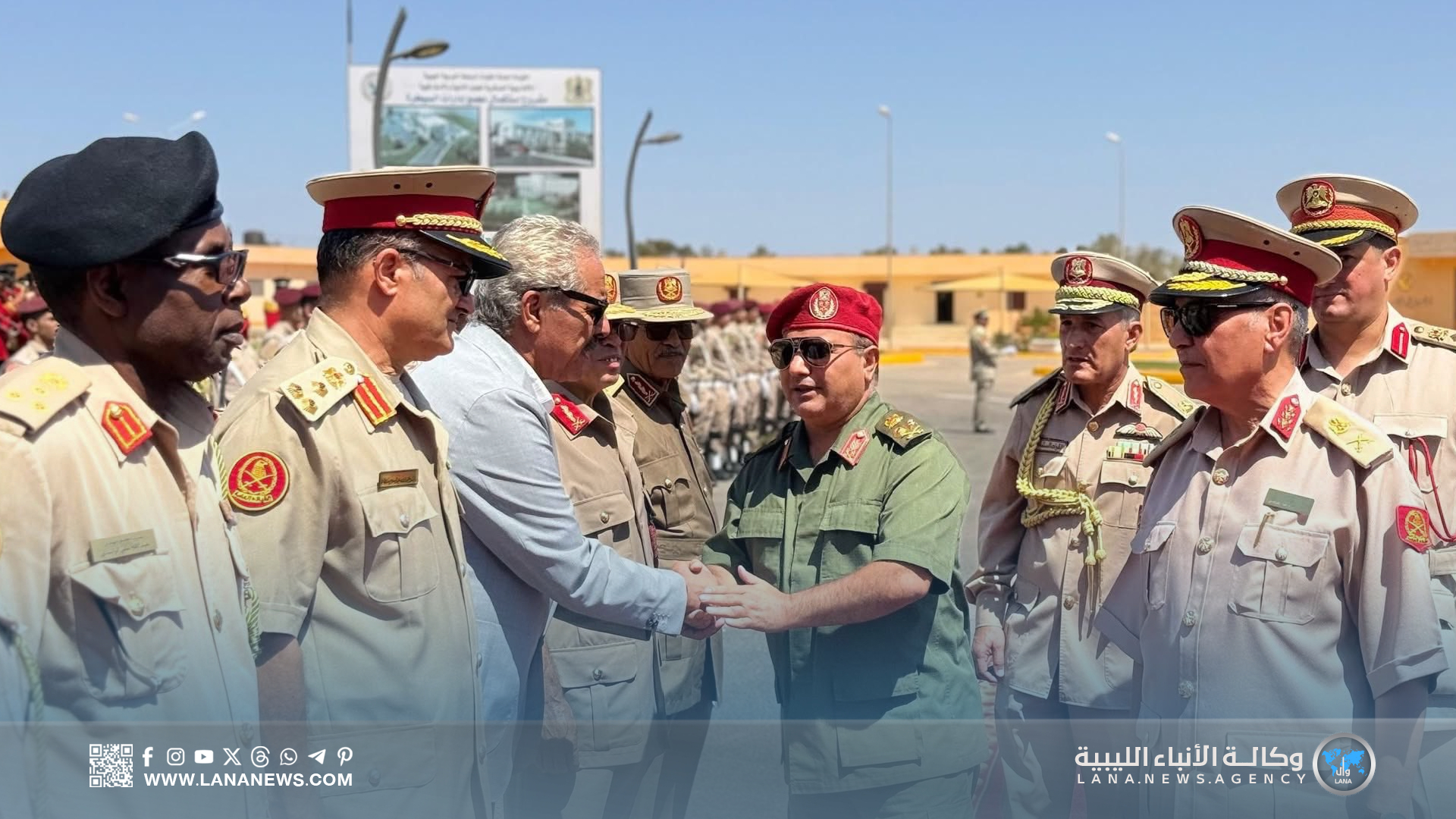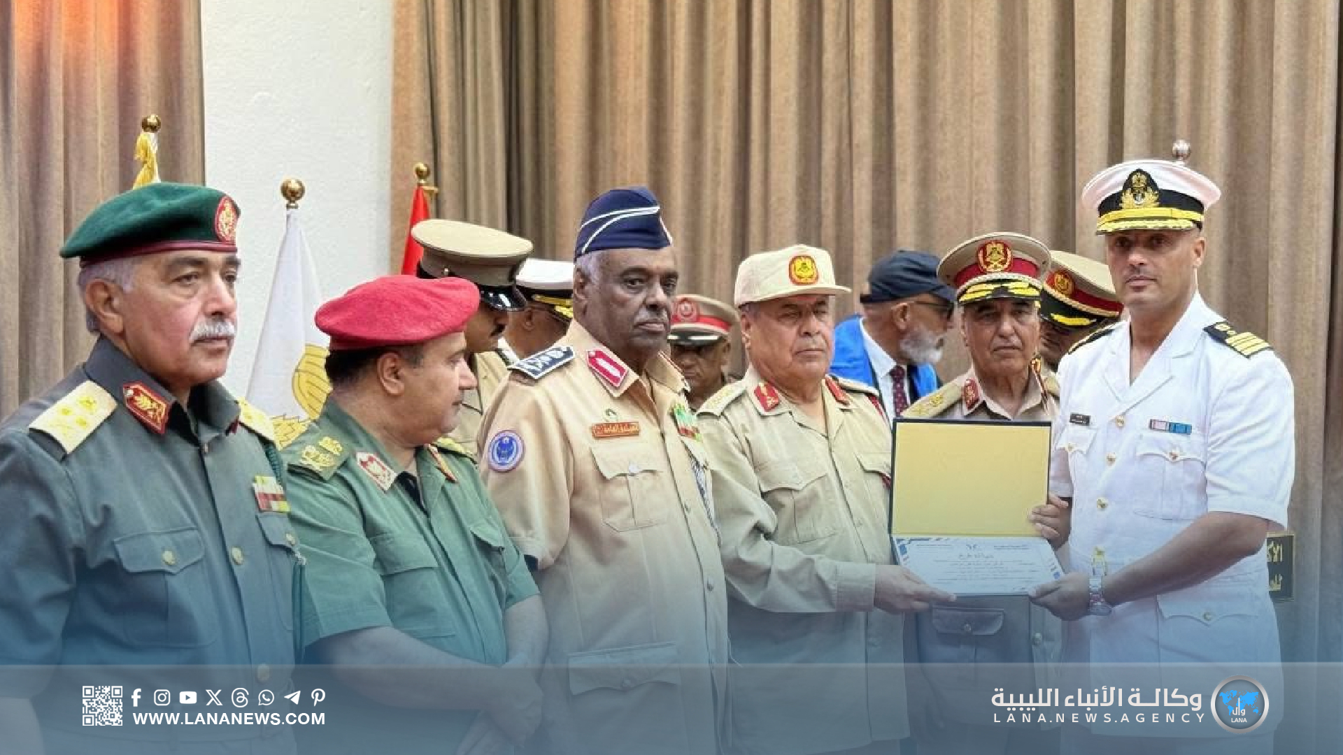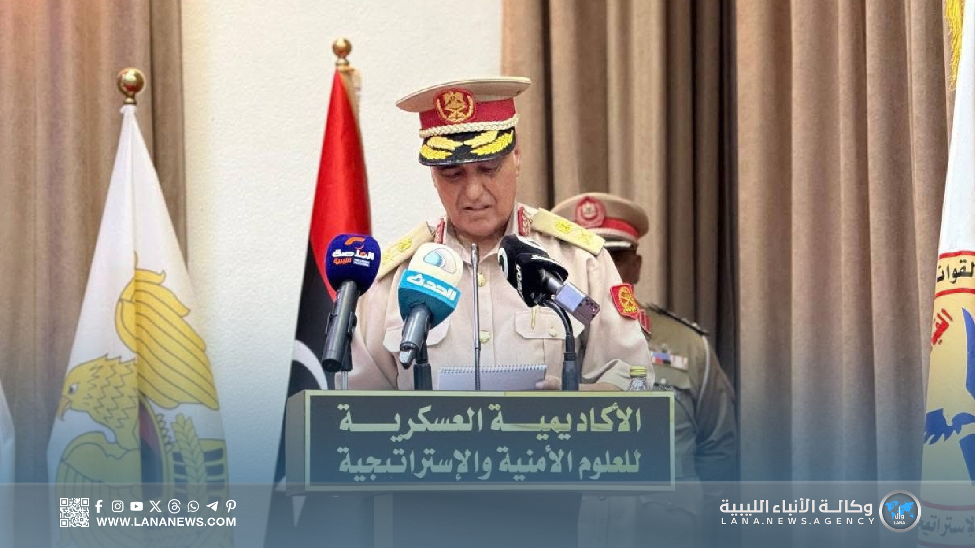 وحضر الحفل رئيس الأركان العامة الفريق أول عبدالرازق الناظوري، رفقة الأمين العام للقيادة العامة الفريق أول خيري التميمي، ورئيس أركان الوحدات الأمنية فريق ركن خالد حفتر، والفريق أيوب بوسيف، والمفتش العام فريق صقر الجروشي، ورئيس هيئة السيطرة اللواء “عون الفرجاني”، إلى جانب عدد من رؤساء الأركان النوعية، ورؤساء الهيئات، ومدراء الإدارات العسكرية.