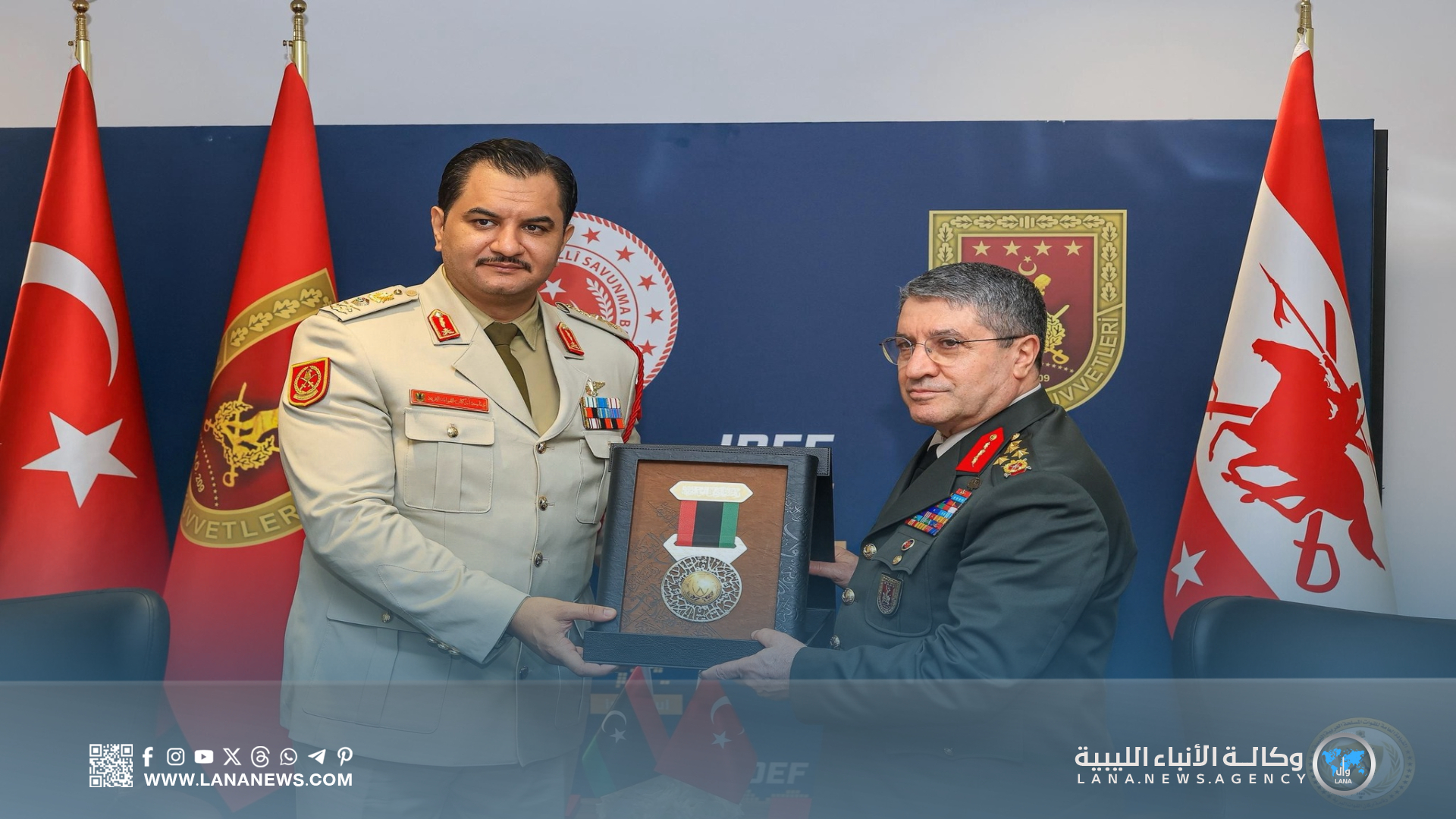 إسطنبول 22 يوليو 2025 (الأنباء الليبية) – شارك رئيس أركان القوات البرية الليبية، الفريق ركن صدام خليفة، في فعّاليات معرض IDEF 2025 الدولي للصناعات الدفاعية، المقام بمدينة إسطنبول، ضمن زيارة رسمية إلى الجمهورية التركية، جاءت بناءً على دعوة رسمية من الجانب التركي.