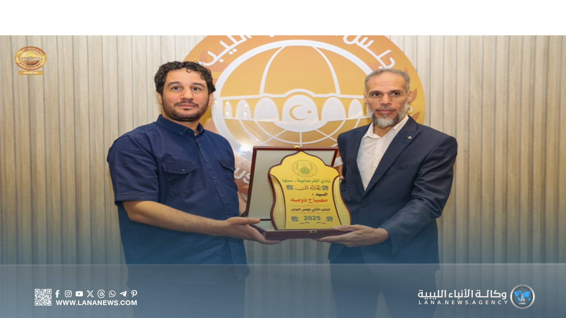 وخلال اللقاء، كرّم نادي القرضابية النائب الثاني لرئيس البرلمان، بدرع تقديرًا لجهوده المتميزة ودعمه المتواصل لأندية المنطقة الجنوبية، مُشيدين بدوره في تعزيز الرياضة وتشجيع الشباب في المنطقة. (الأنباء الليبية – بنغازي) ر ت
