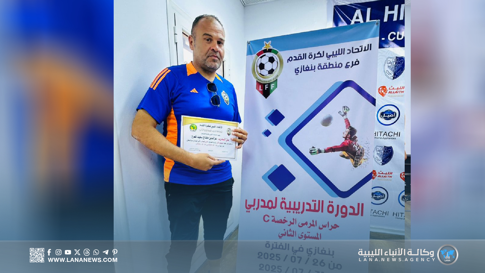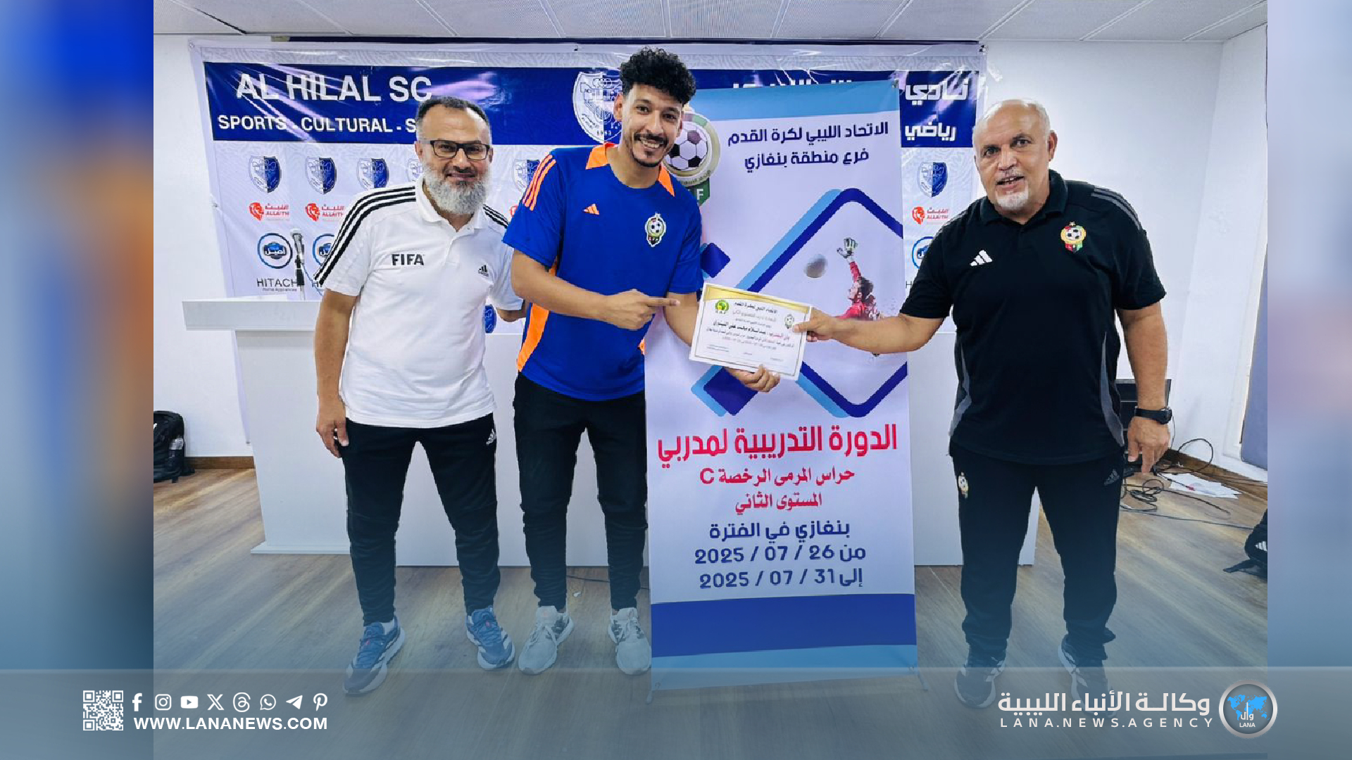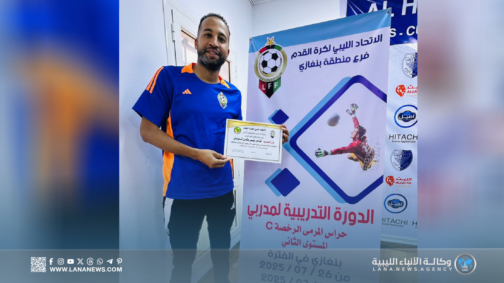 بنغازي 31 يوليو 2025 – ( الأنباء الليبية ) – اختتمت اليوم الخميس، بمدينة بنغازي، فعاليات دورة مدربي حراس المرمى لكرة القدم (المستوى الثاني)، التي نُظمت تحت إشراف الاتحاد الليبي لكرة القدم، وبإشراف مباشر من الاتحاد الفرعي بالمدينة، وذلك داخل مرافق نادي الهلال الرياضي.