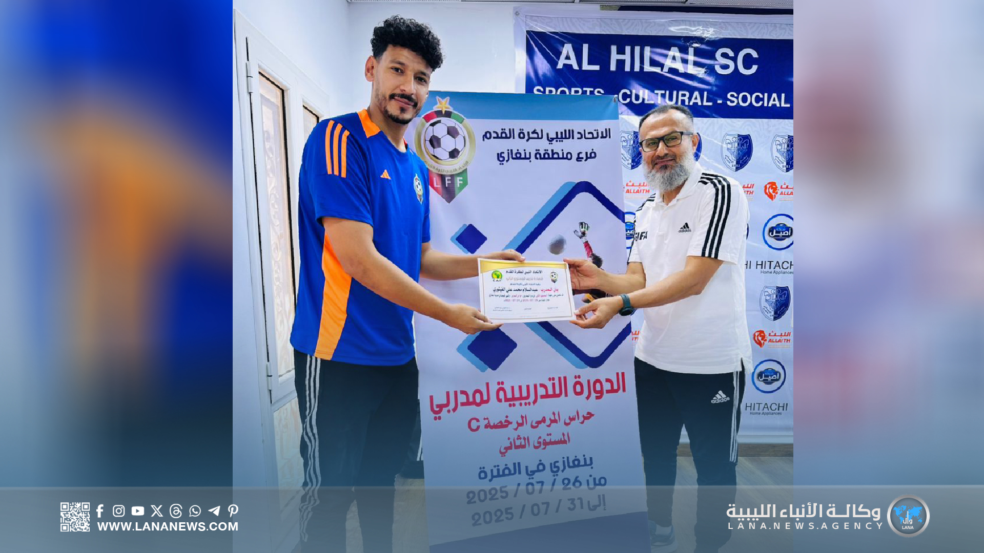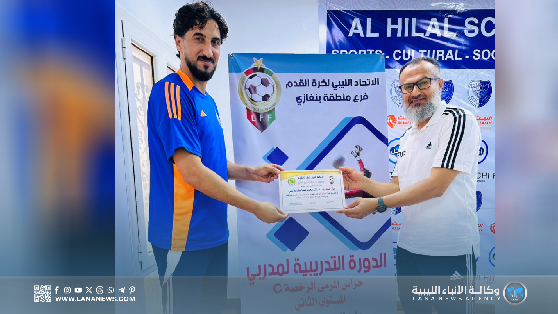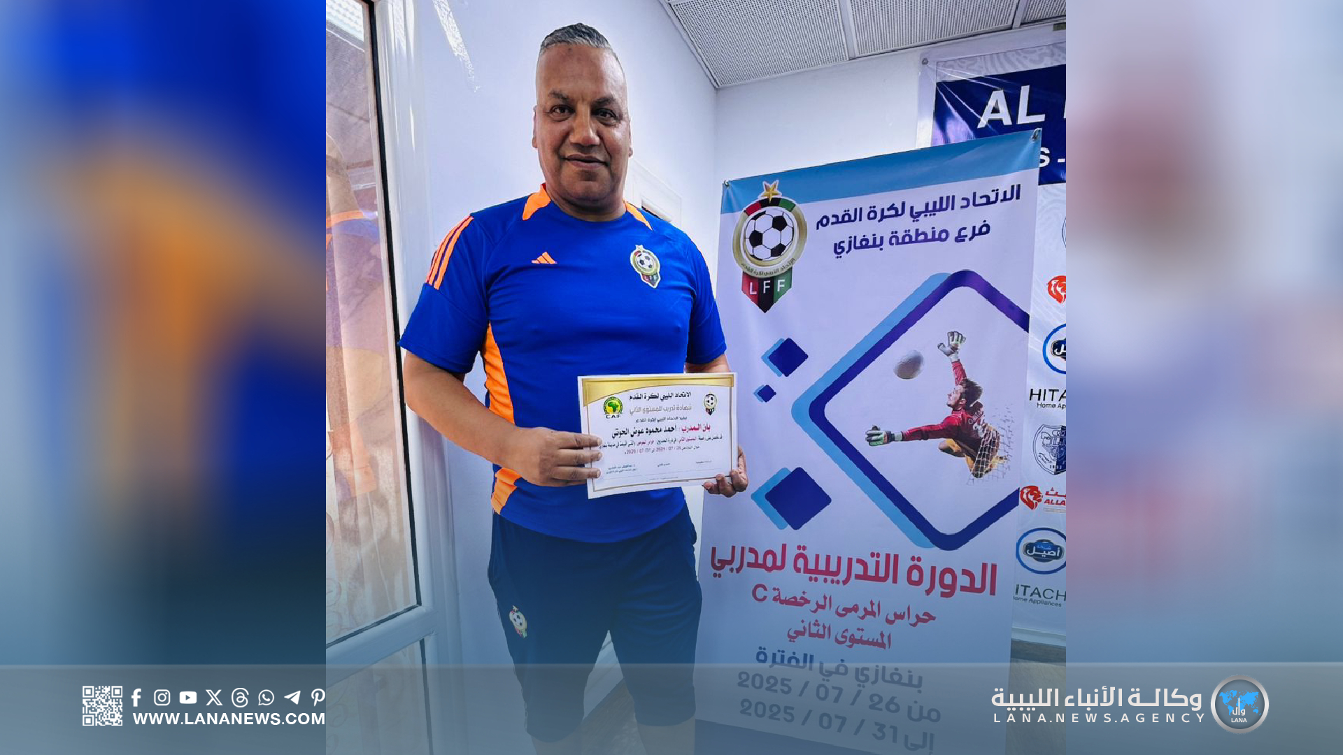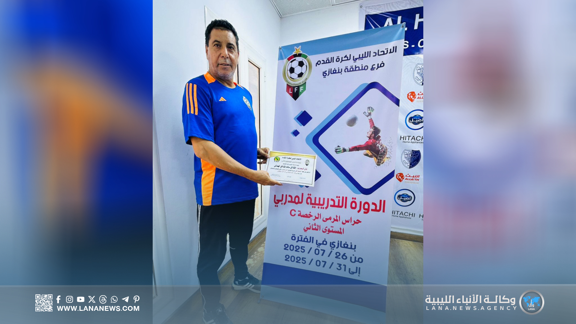 بنغازي 31 يوليو 2025 – ( الأنباء الليبية ) – اختتمت اليوم الخميس، بمدينة بنغازي، فعاليات دورة مدربي حراس المرمى لكرة القدم (المستوى الثاني)، التي نُظمت تحت إشراف الاتحاد الليبي لكرة القدم، وبإشراف مباشر من الاتحاد الفرعي بالمدينة، وذلك داخل مرافق نادي الهلال الرياضي.