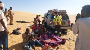 أما آدم أحمد (22 عامًا) فقد تحدث عن تجربة صعبة قائلاً: “تعطلت السيارة في وسط الصحراء، وكان برفقتنا أطفال، تلقينا نداء استغاثة من مسافر آخر، وسرعان ما وصل الإسعاف الليبي ونقلنا جميعًا. لا نملك إلا الدعاء لهم.”