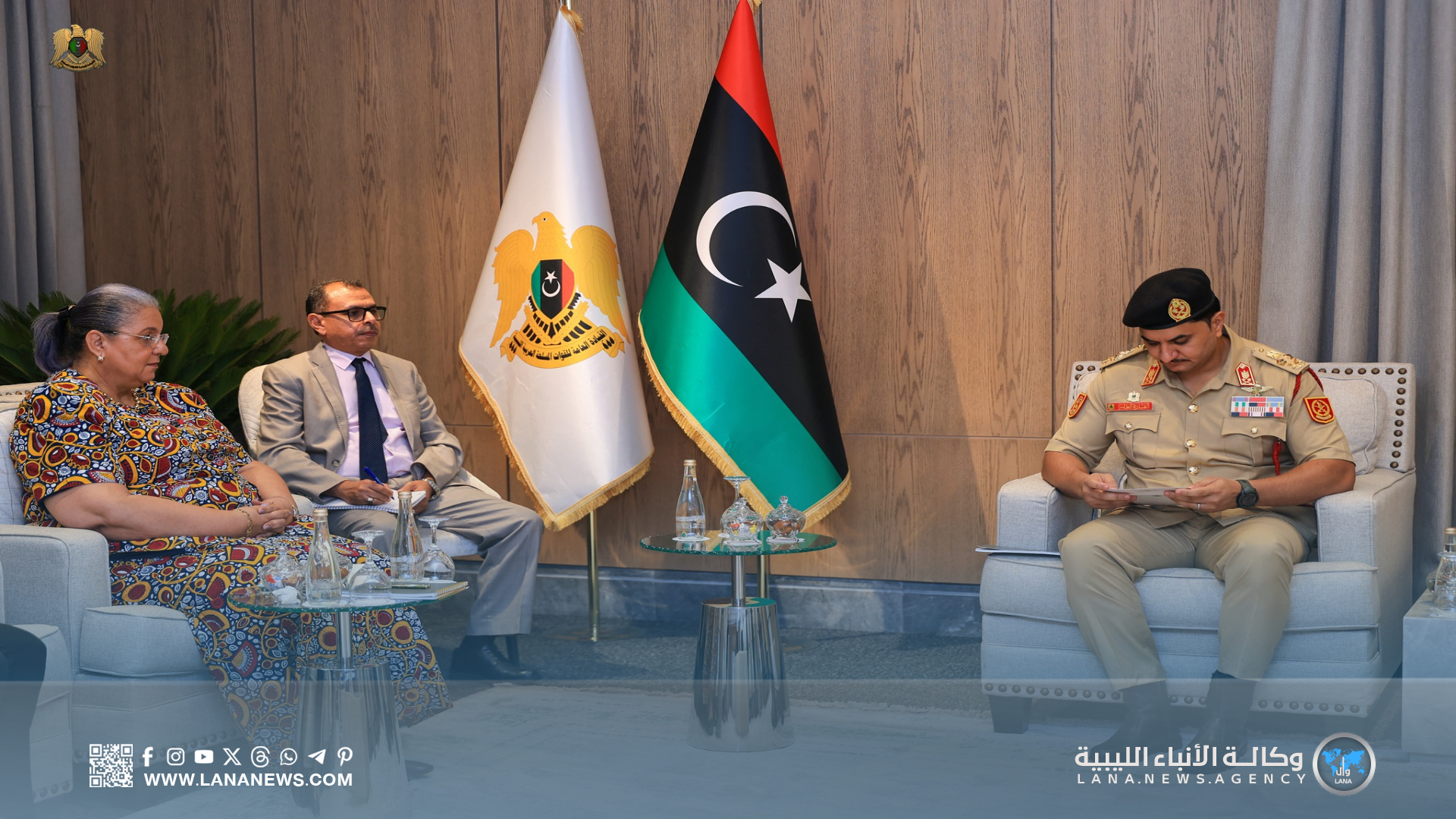 كما استعرض الفريق صدام خليفة، جهود القيادة العامة في الحدّ من تدفق الهجرة غير الشرعية عبر التنسيق مع دول الجوار بمنطقة البحر الأبيض المتوسط، بالإضافةِ إلى الإجراءات المتخذة لاستقبال وإيواء النازحين السودانيين في مدينة الكفرة، مع تقديم الرعاية الصحية اللازمة لهم، وترتيبات عودتهم إلى بلادهم بالتنسيق مع الأمم المتحدة.