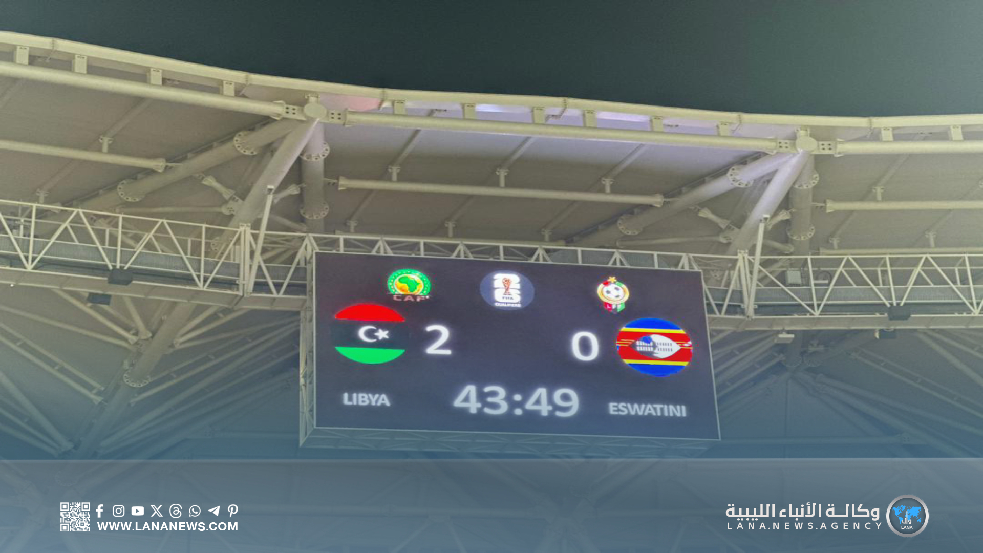 بنغازي 08 سبتمبر 2025 (الأنباء الليبية) – انتهى الشوط الأول من مباراة المنتخب الوطني أمام نظيره الإسواتيني بتقدُّم فرسان المتوسط بهدفين دون رد، ضِمن التصفيات المؤهلة إلى نهائيات كأس العالم 2026، في اللقاء الذي يُقام على أرضية ملعب بنغازي الدولي.