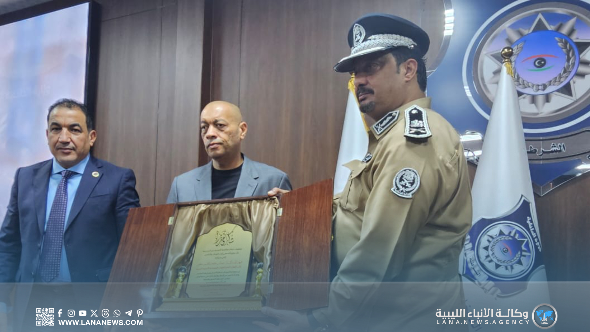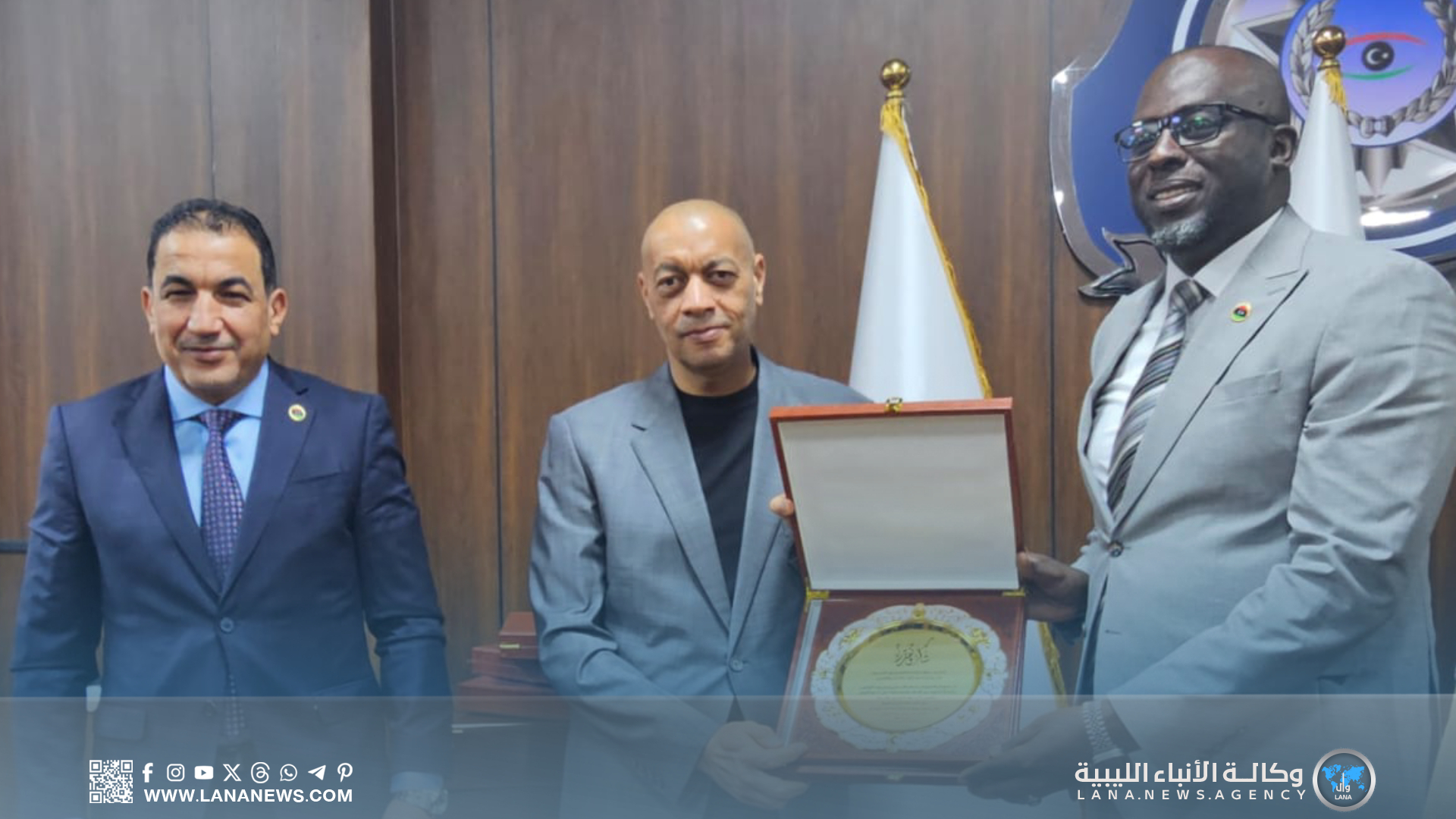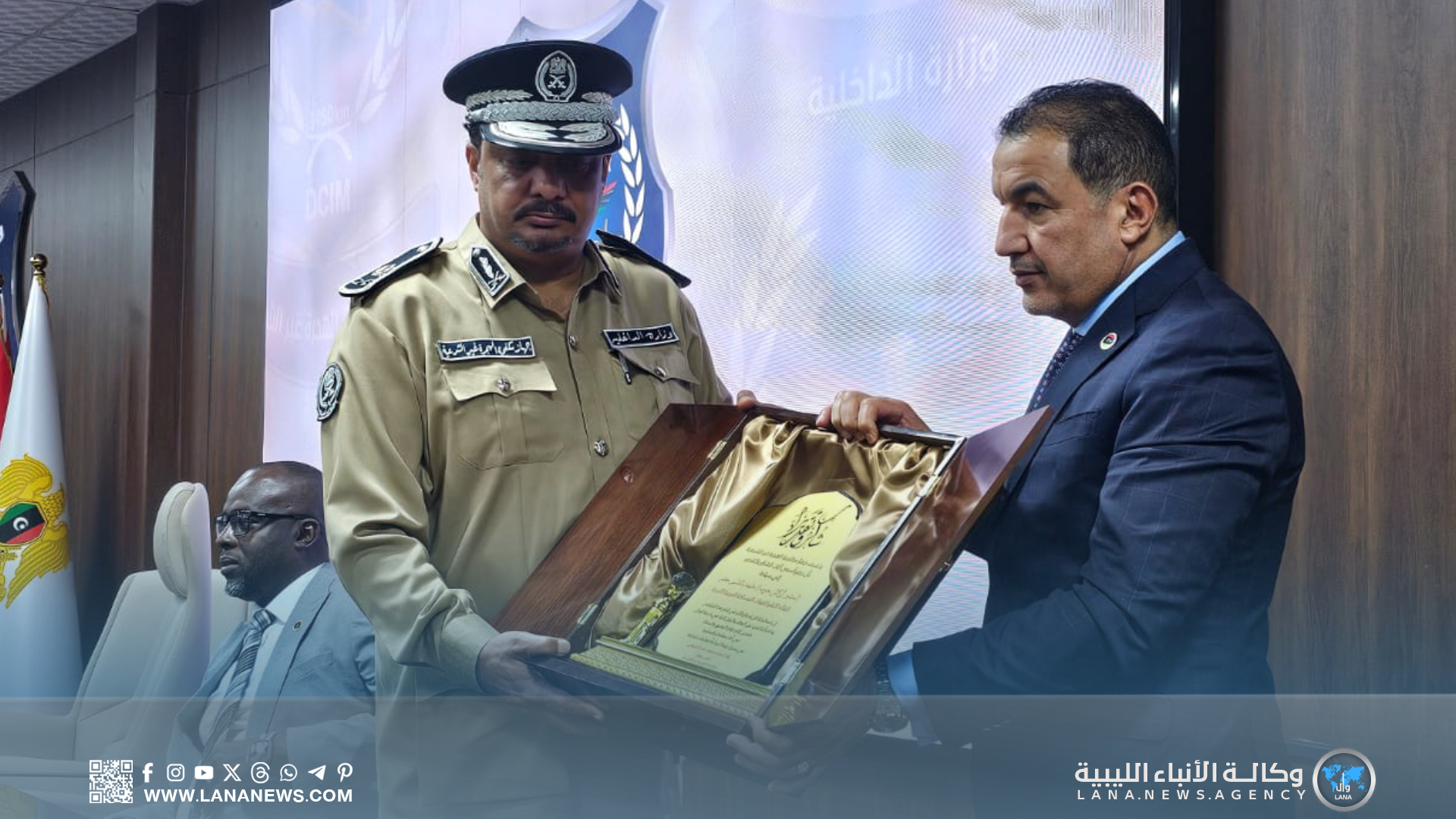 وحظي اللقاء بحفل تكريم شمل القائد العام للقوات المسلحة المشير حفتر، ونائبه الفريق أول صدام حفتر، ووزير الداخلية، ووزير الدولة لشؤون الهجرة، ورؤساء عدد من الأجهزة الأمنية، تقديرا لدورهم في دعم مكافحة الهجرة غير الشرعية.