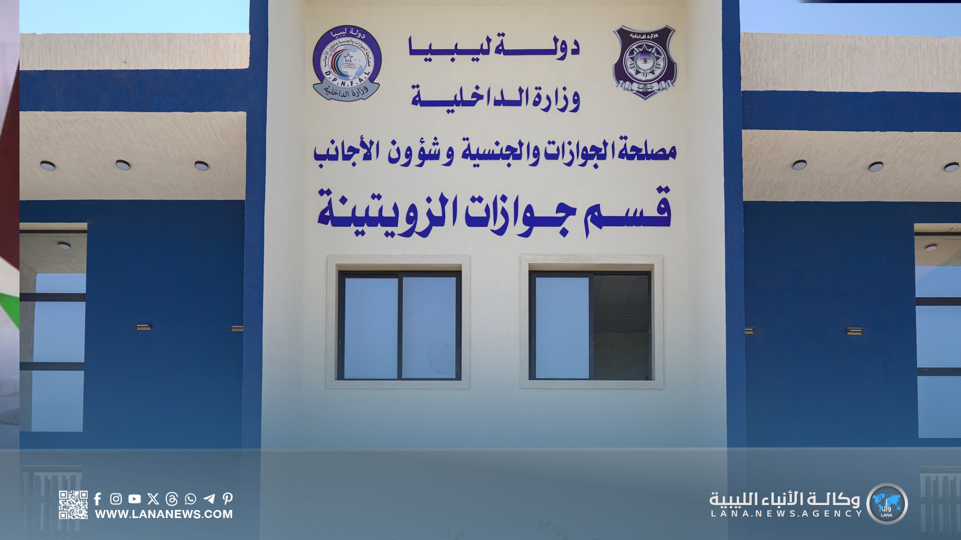 الزويتينة 15 سبتمبر 2025 (الأنباء الليبية) – افتتح قسم جوازات الزويتينة، أمس الأحد، وذلك لتخفيف الازدحام على الفروع الأخرى بمصلحة الجوازات والجنسية وشؤون الأجانب، وتقريب الخدمة للمواطنين. يأتي ذلك بتوجيهات القائد العام للقوات المسلحة العربية الليبية المشير أركان حرب خليفة أبوالقاسم حفتر، وبإشراف ومتابعة نائب القائد العام الفريق أول ركن صدام خليفة حفتر، خدمة للصالح العام ودعما لقطاعات الدولة في خدمة المواطنين. (الأنباء الليبية) س خ.