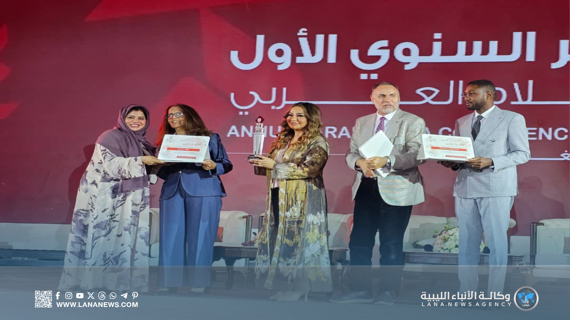 وفي ختام الجلسة، قامت اللجنة العليا للمؤتمر بتكريم المشاركين، حيث تم تكريم الإعلامية البحرينية بروين حبيب، والكاتب والشاعر الليبي جمعة الفاخري، والأكاديمية والباحثة الليبية في العلوم السياسية عبير أمنينة، بالإضافة إلى الإعلامي والصحفي بهاء الشريف الذي أدار الجلسة.