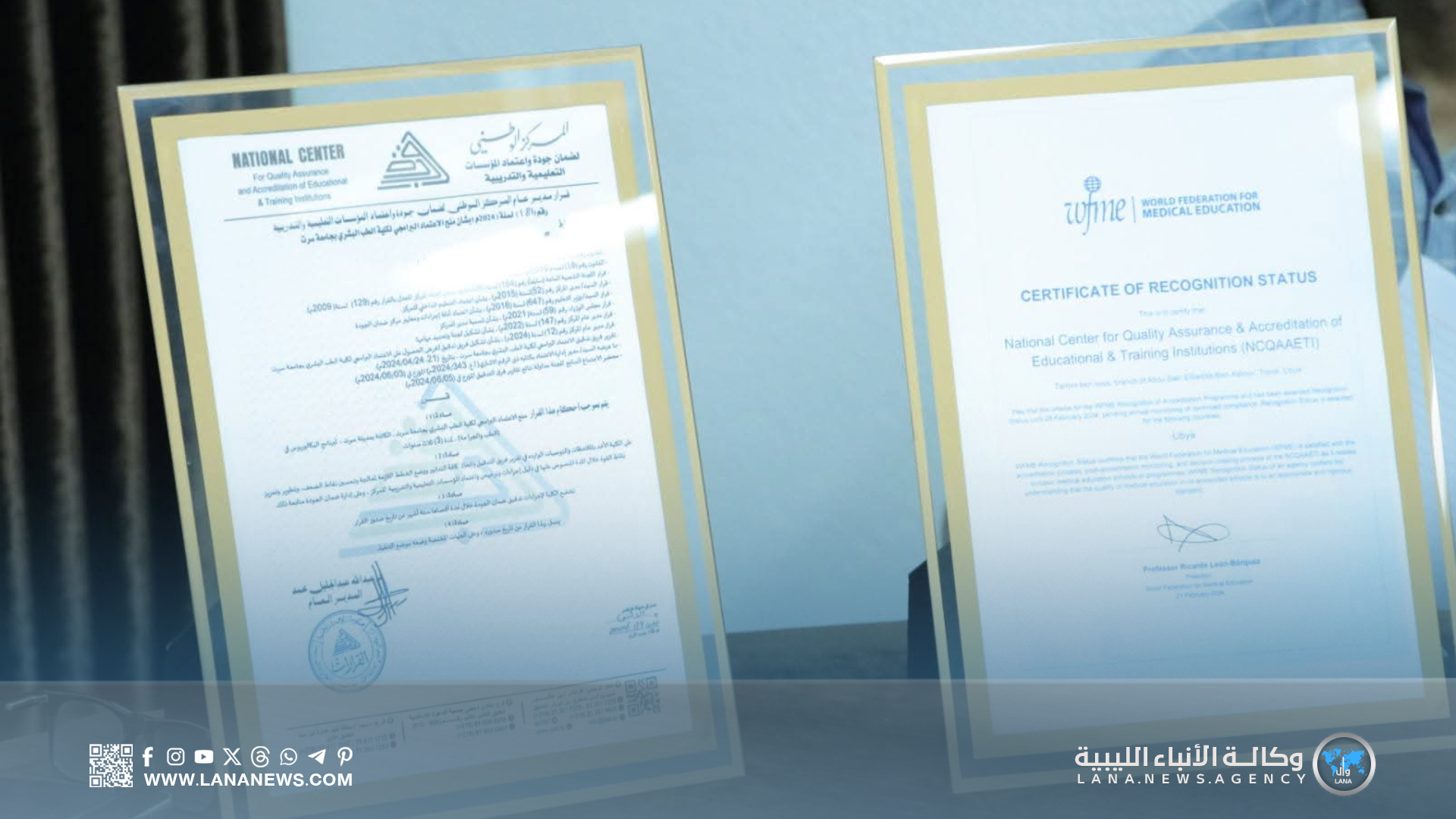 كما سلم نسخة من قرار الاعتماد البرامجي، إضافة إلى نسخة من وثيقة الاعتراف الدولي الممنوح لمركز ضمان الجودة، الذي بدوره منح كلية الطب الاعتراف الدولي لالتزامها بمعايير الجودة الأكاديمية.