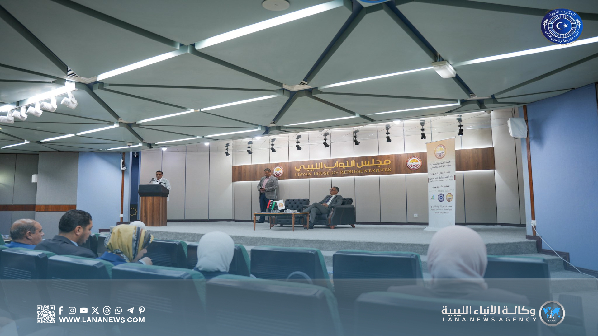 بنغازي 20 سبتمبر 2025 (الأنباء الليبية) – شارك مدير إدارة منظمات المجتمع المدني بوزارة الخارجية رفقة الوفد المرافق له، في جلسة حوارية عقدت اليوم السبت، حول “المسؤولية المجتمعية ودورها في دعم مؤسسات المجتمع المدني”.