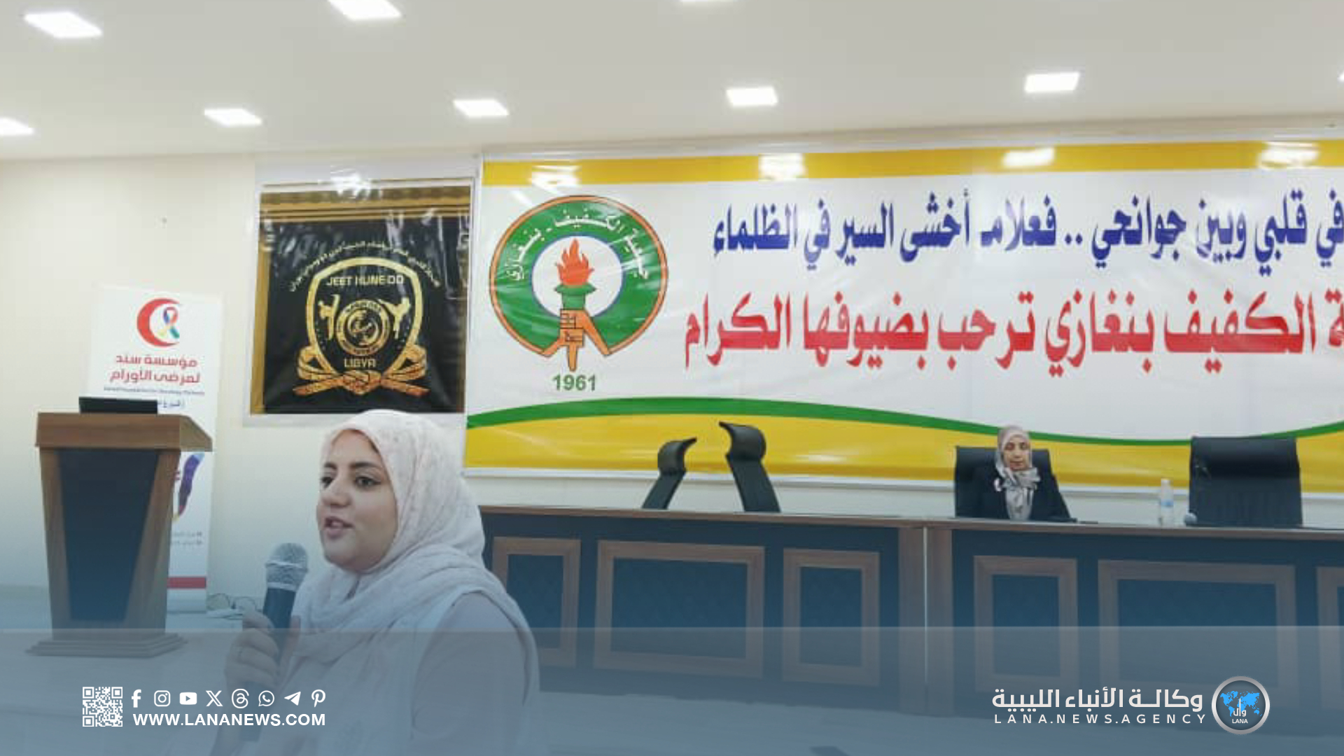 بنغازي 02 أكتوبر 2025 (الأنباء الليبية) – انطلقت اليوم الخميس، الندوة العلمية للتوعية بسرطان الثدي بإشراف الاتحاد الليبي لرياضات الجيت كون دو والمواي بوران، وبالتعاون مع مؤسسة سند لمرضى الأورام وجمعية الكفيف، تحت مسمى “الكشف المبكر أمان واطمئنان”، وذلك بهدف نشر التوعية الصحية وتعزيز الثقافة المجتمعية حول الكشف المبكر والوقاية من هذا المرض.