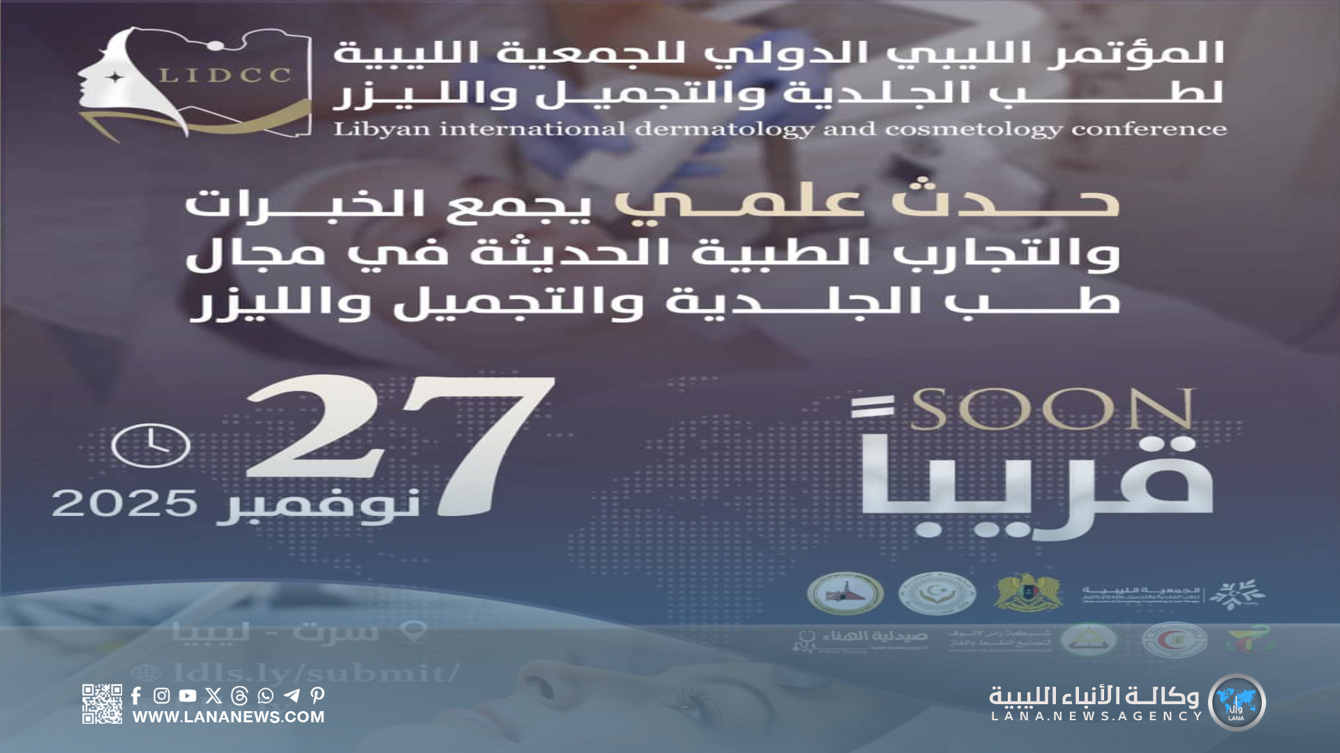 سرت 07 أكتوبر 2025 (الأنباء الليبية) – تستضيف مدينة سرت في الفترة من 27 إلى 29 نوفمبر المقبل، أعمال المؤتمر الليبي الدولي لأمراض الجلدية والتجميل والعلاج بالليزر، الذي تنظمه الجمعية الليبية لطب الجلدية والتجميل والليزر، برعاية مستشفى بن سينا التعليمي بسرت، وبدعم من القيادة العامة وشركة رأس لا نوف لتصنيع النفط والغاز.