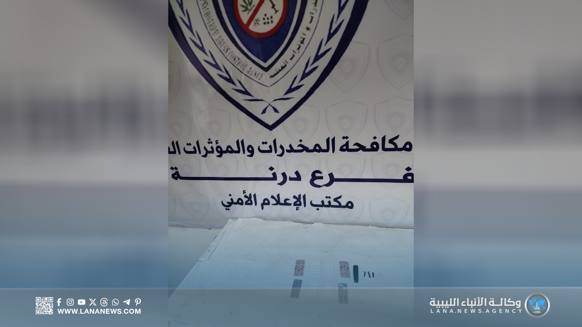 وفي مدينة درنة، ضبط فرع الجهاز المواطن «أ. م. ع» من مواليد 1993، يعمل بقطاع الصحة، وبحوزته كميات من مخدر الحشيش وأقراص «ترامادول» و«ابتريل»، وأُحيل إلى الجهات المختصة لاستكمال الإجراءات.