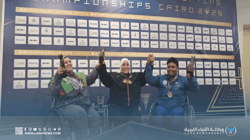 القاهرة 16 أكتوبر 2025 (الأنباء الليبية) – أحرزت البطلة الليبية غزالة محمد العقوري ميداليتين برونزيتين في بطولة العالم لرفعات القوة البارالمبية، المقامة حاليًا في جمهورية مصر العربية، وذلك بعد تألقها اللافت في منافسات وزن 88 كيلوجرامًا والمجموع العام.
