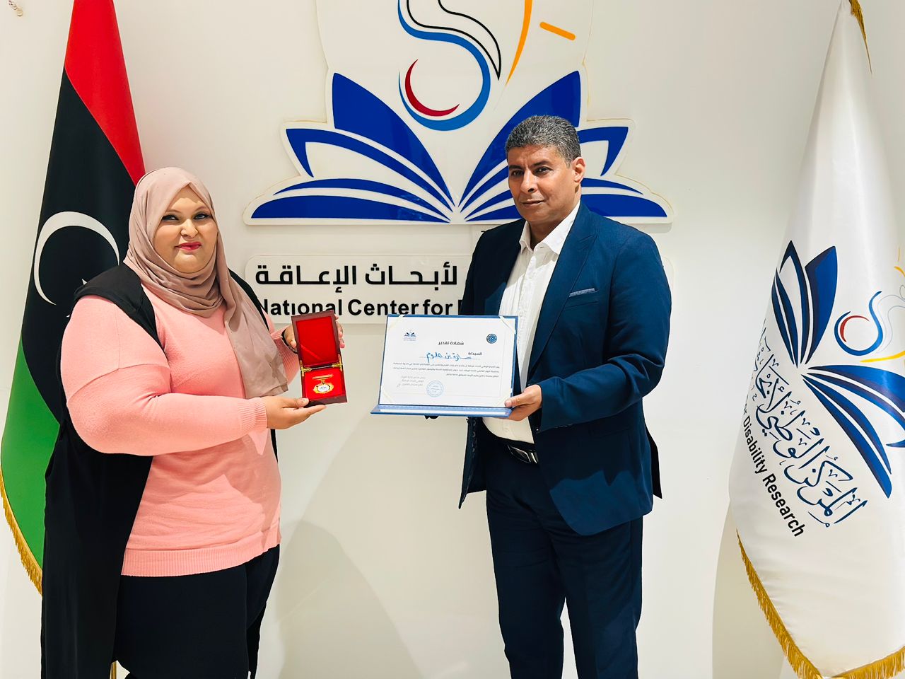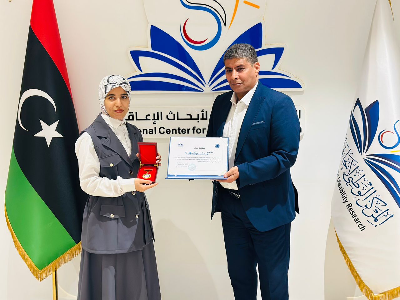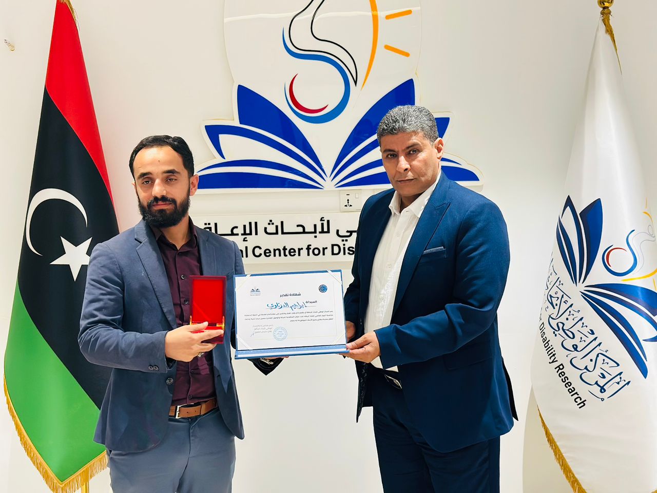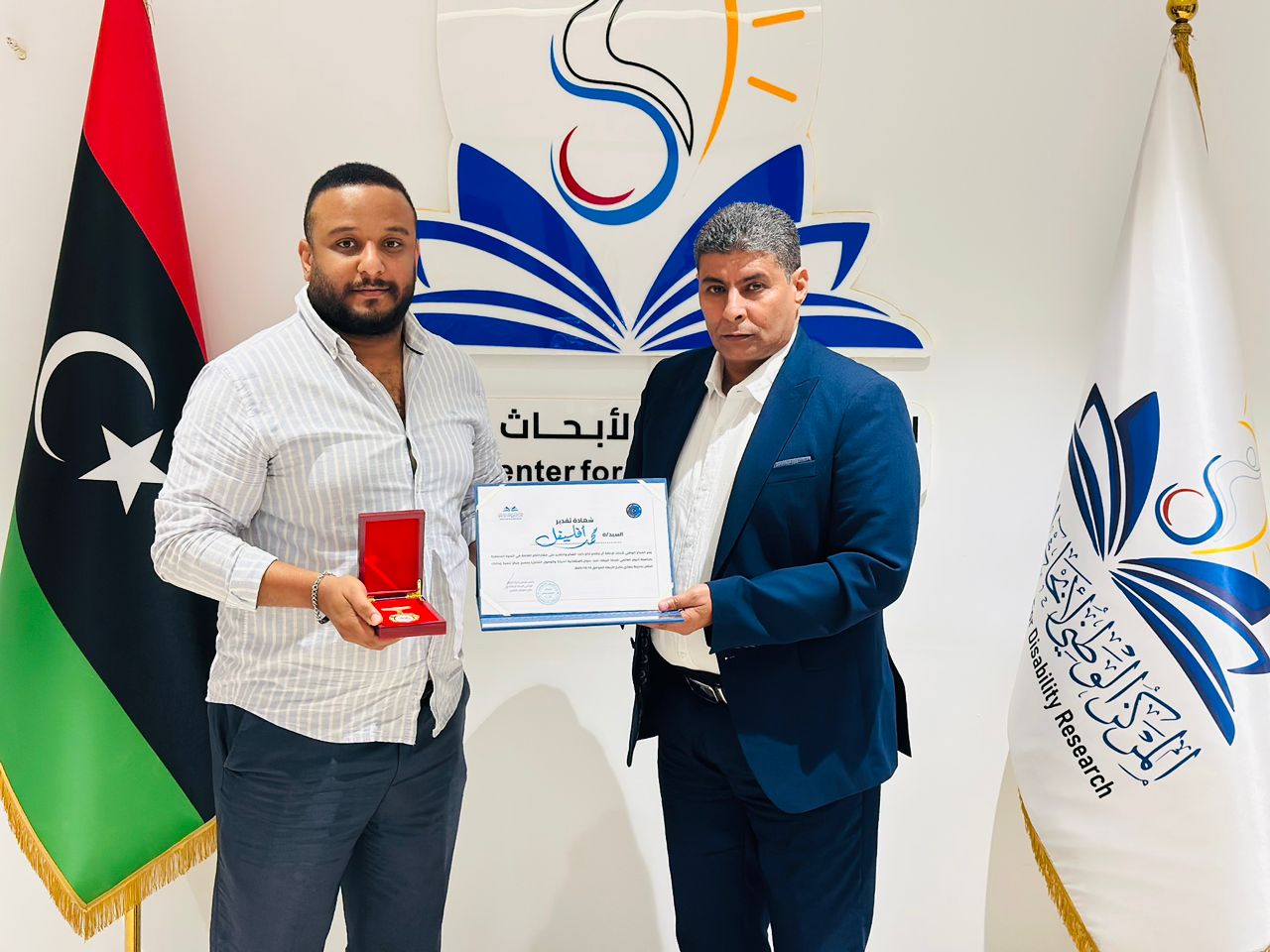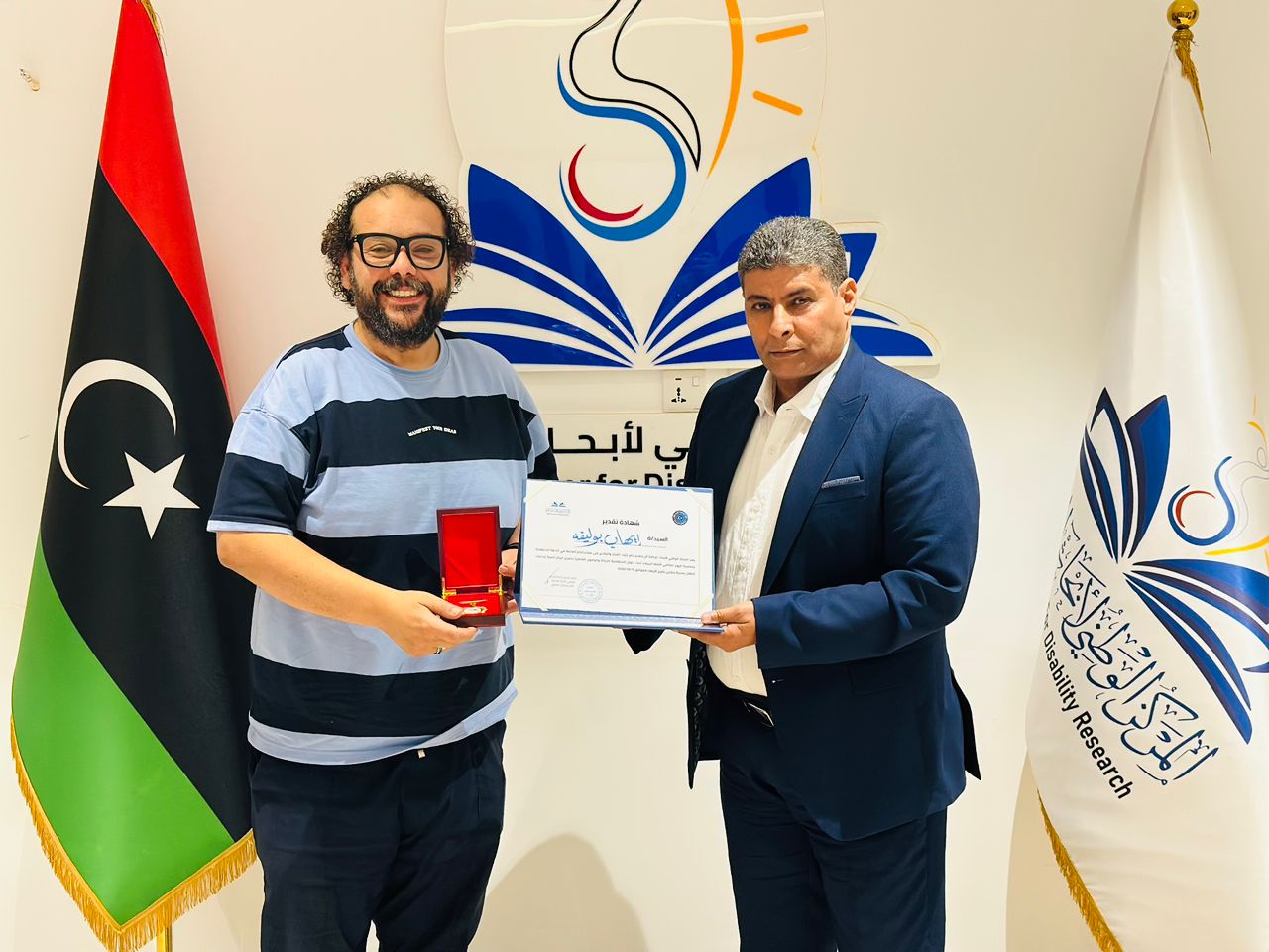 بنغازي 26 أكتوبر 2025 (الأنباء الليبية) – نظم المركز الوطني لأبحاث الإعاقة ببنغازي احتفالية تكريمية لعدد من الإعلاميين، تقديرًا لجهودهم في دعم برامج المركز ونشر رسالته الإنسانية الهادفة إلى تمكين الأشخاص ذوي الإعاقة وتعزيز الوعي المجتمعي بحقوقهم وفرصهم في المشاركة المتكافئة.