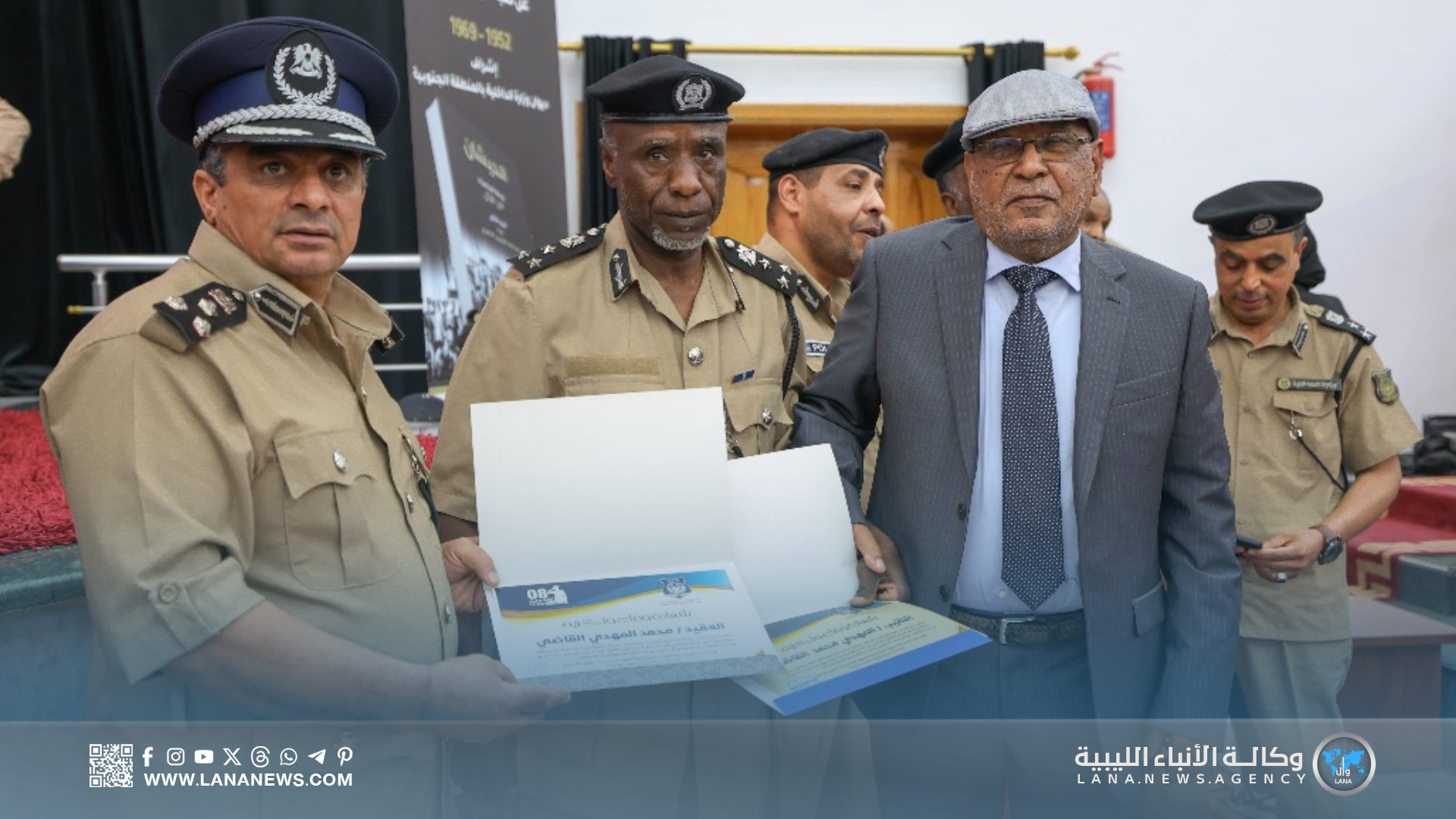 وأكد ديوان مجلس الوزراء بالمنطقة الجنوبية أن مشاركته في هذا الحدث تأتي ضمن جهود تعزيز روح الانتماء الوطني، وتكريم رجال الوطن الأوفياء الذين حملوا مسؤولية حماية الجنوب والحفاظ على أمنه واستقراره عبر العقود الماضية، مؤكدا أن مثل هذه الفعاليات تعزز التواصل بين الأجيال السابقة والحالية من العاملين في المجال الأمني، وتؤكد على أهمية الاستمرار في مسيرة البناء والتطوير المؤسسي .(الأنباء الليبية) س خ.