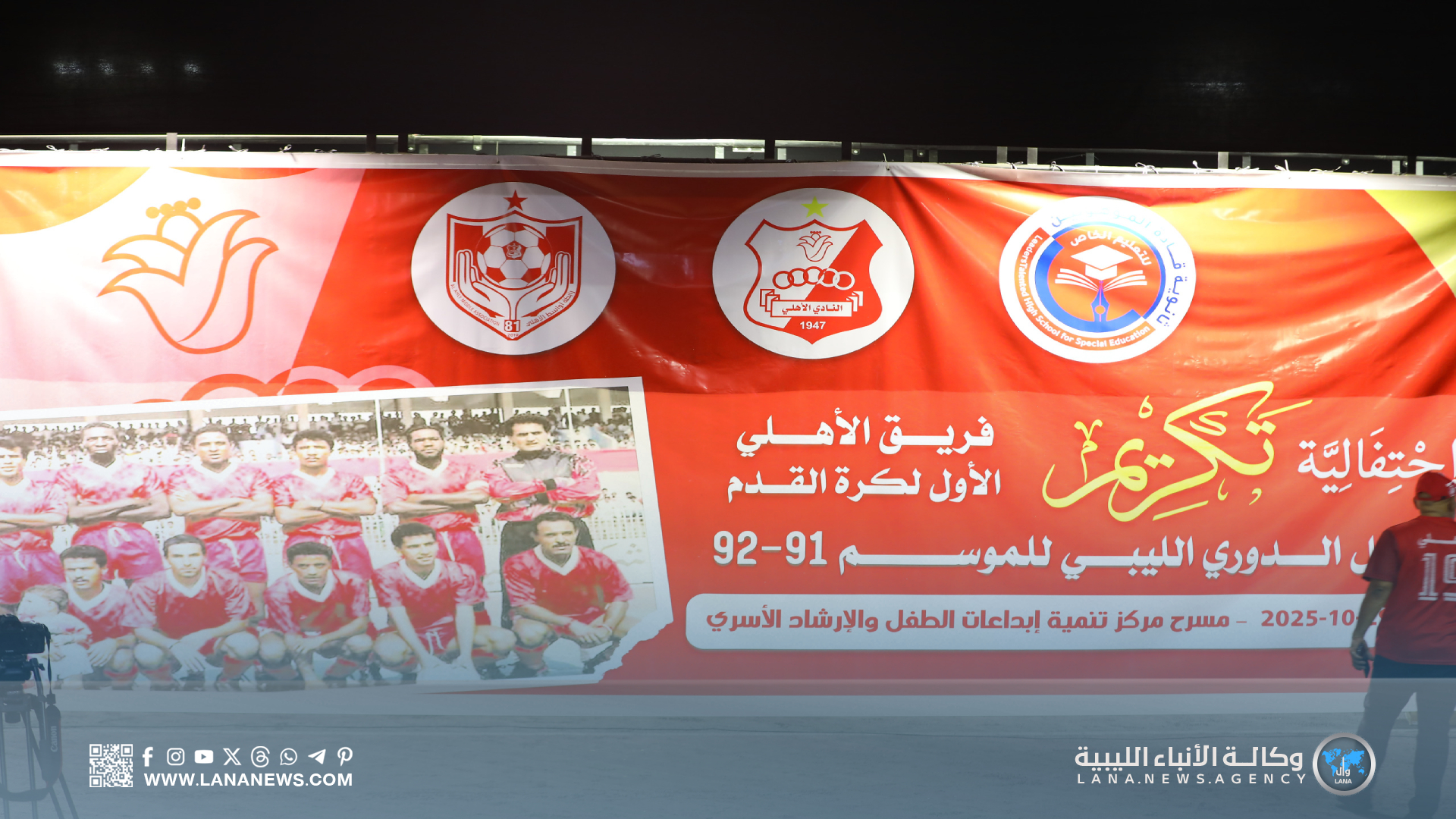 بنغازي 29 أكتوبر 2025 (الأنباء الليبية) – وفاءً لأبطال الأمس وإلهامًا لأبطال الغد، نظّمت رابطة رياضيي الأهلي القدامى (دفعة 1981)، بالتعاون مع ثانوية قادة الموهوبين، مساء اليوم الأربعاء، احتفالية استثنائية لتكريم أبطال الدوري الليبي لكرة القدم لموسم 1991/1992، داخل مركز تنمية إبداعات الطفل والإرشاد النفسي بمدينة بنغازي.