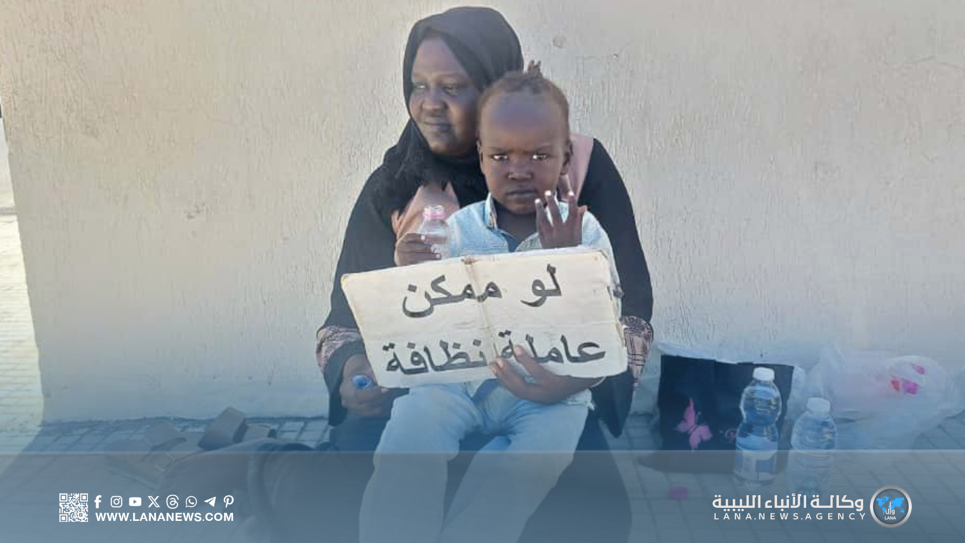 وتحدثت السودانية تالا صالح إلى مراسلة لـ (وال) التقتها في تقاطع شوارع في منطقة حي الأندلس مصحوبة بطفلين تطلب مساعدة المارة على تأمين احتياجات طفليها، وكان أحدهما يرفع لوحة مكتوب عليها “لو ممكن عاملة نظافة” موضحة على استحياء أن زوجها قُتل في الحرب ورافقت عددا من سكان منطقتها في رحلة طويلة محفوفة بالمخاطر إلى الكفرة الليبية قبل أن تنتقل إلى طرابلس بحثا عن فرصة عمل.