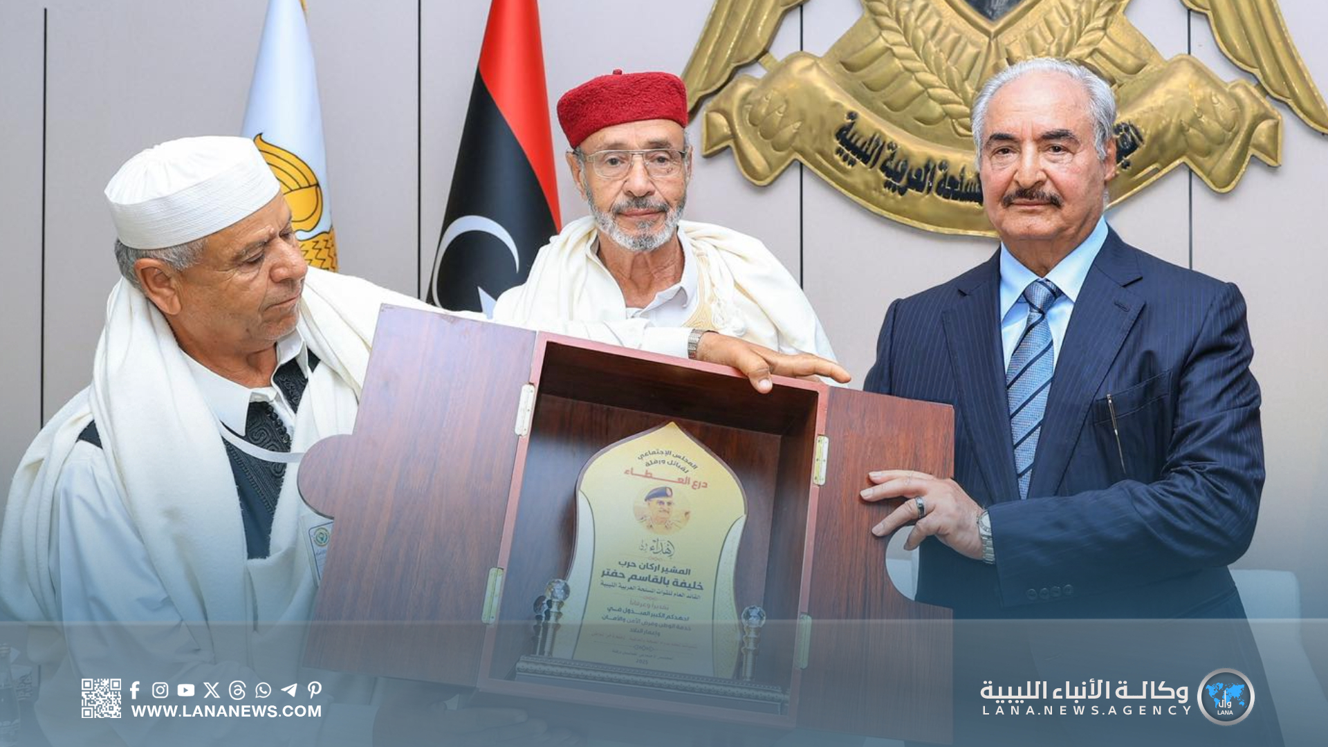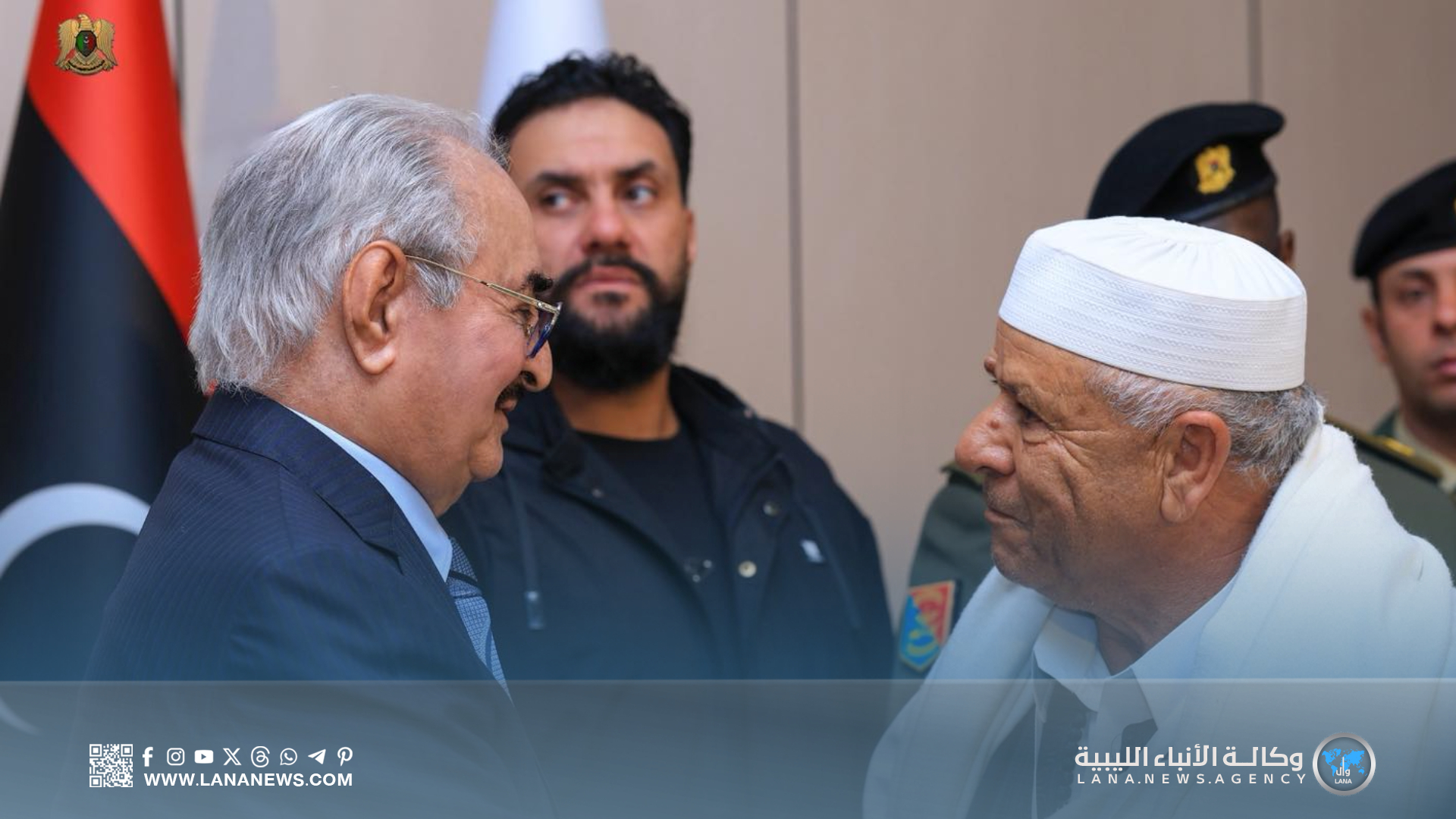 من جانبه، رحّب القائد العام بمشايخ وأعيان قبائل بني وليد، مشيدًا بمواقفهم الوطنية ودورهم التاريخي في تعزيز السلم الاجتماعي ووحدة الوطن، ودعمهم لمبادرات المصالحة الوطنية.