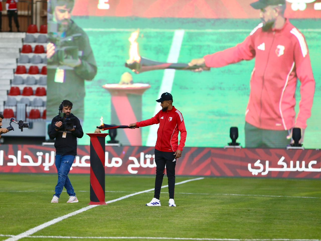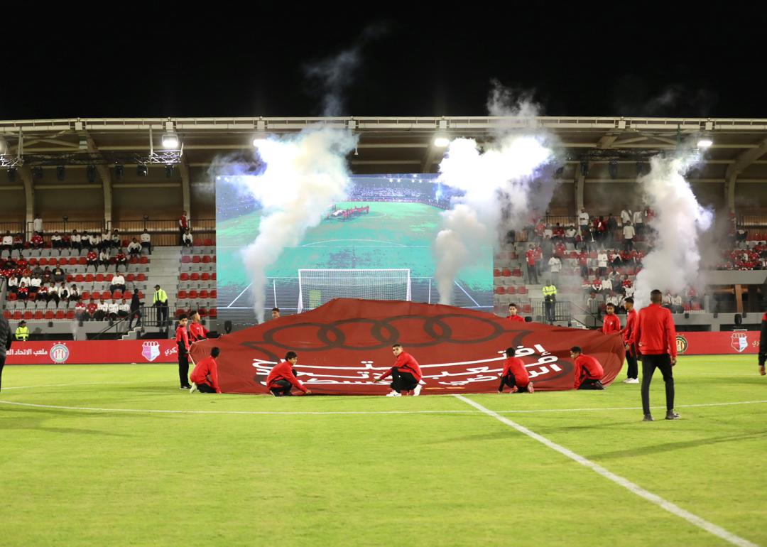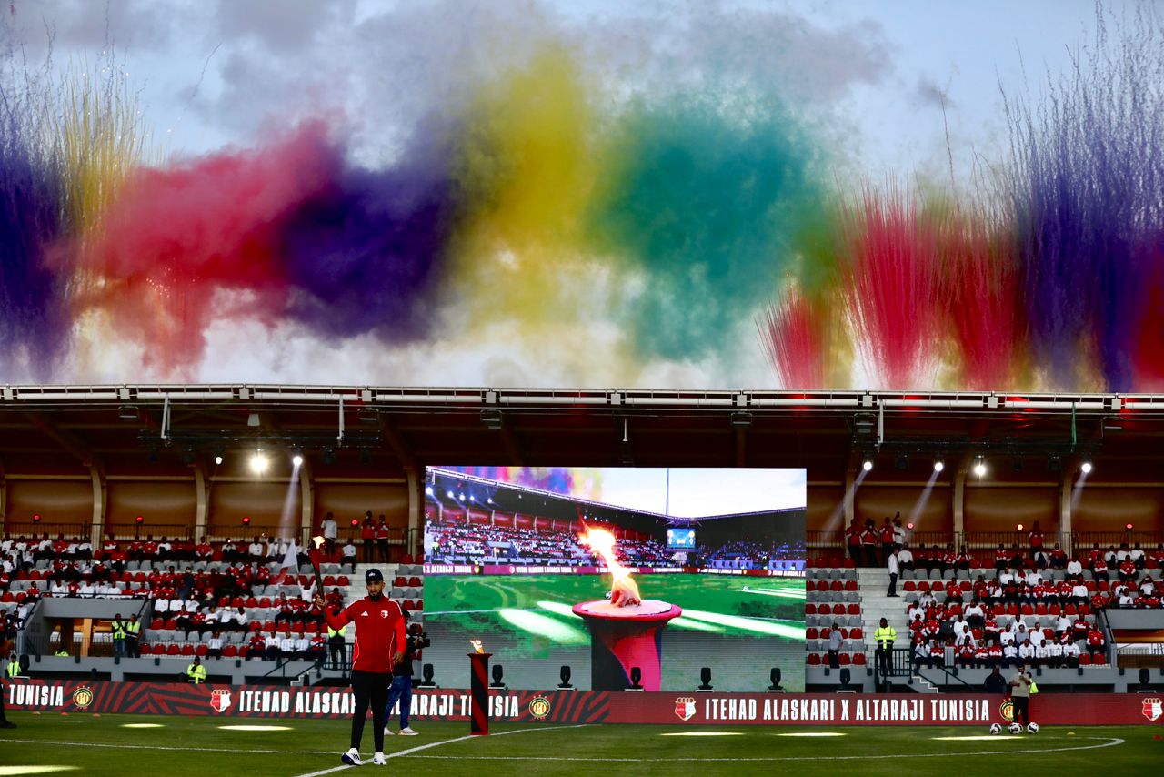 إذ شهد حفل الافتتاح إقامة مباراة ودية بين فريقي الاتحاد الرياضي العسكري والترجي التونسي، انتهت بالتعادل السلبي دون أهداف، حيث قدم الفريقان أداءً مميزًا حتى صافرة النهاية، وسط احتفالات رسمية بهذا الصرح الرياضي الجديد.