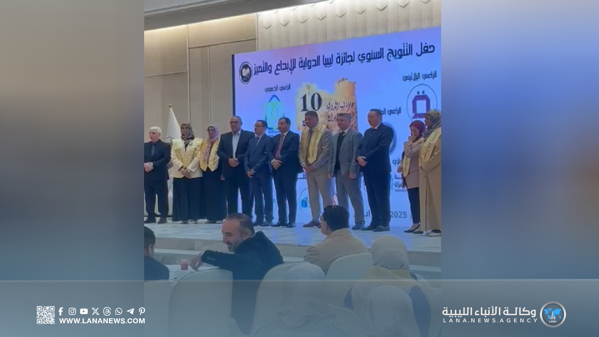 طرابلس 29 نوفمبر 2025 (الأنباء الليبية) – حصد عددٍ من أعضاء هيئة التدريس بجامعة بنغازي، جوائز الإبداع والتميز ضِمن فعّاليات جائزة ليبيا الدولية للإبداع والتميز في موسمها العاشر، والتي أقيمت اليوم السبت بطرابلس، لتكريمِ المبدعين والمتميزين في مختلف المجالات على مستوى الوطن.