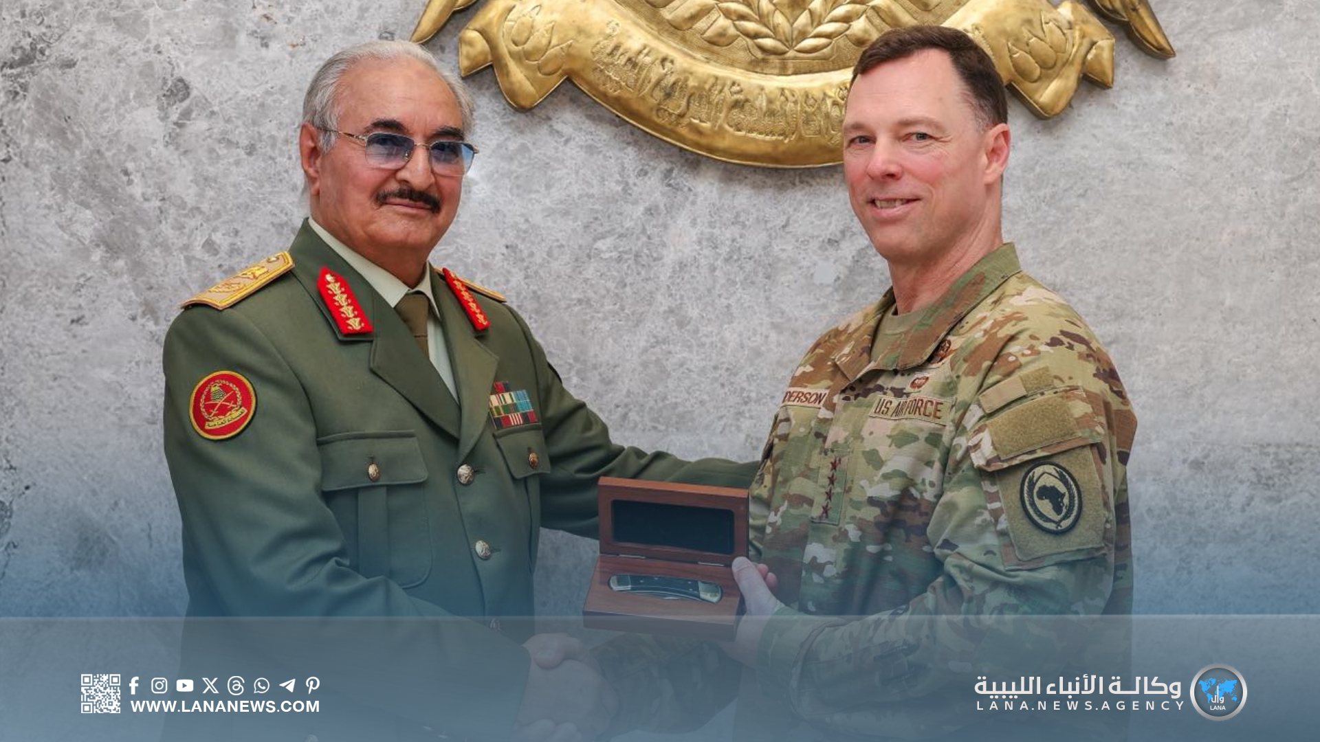 وأكد الاجتماع على مواصلة تعزيز التعاون الثنائي وتطوير آليات التنسيق المشترك بين القيادة العامة والجهات الأمريكية ذات العلاقة، بما يسهم في تحقيق الأمن والاستقرار على المستوى الوطني والإقليمي. (الأنباء الليبية) س خ.