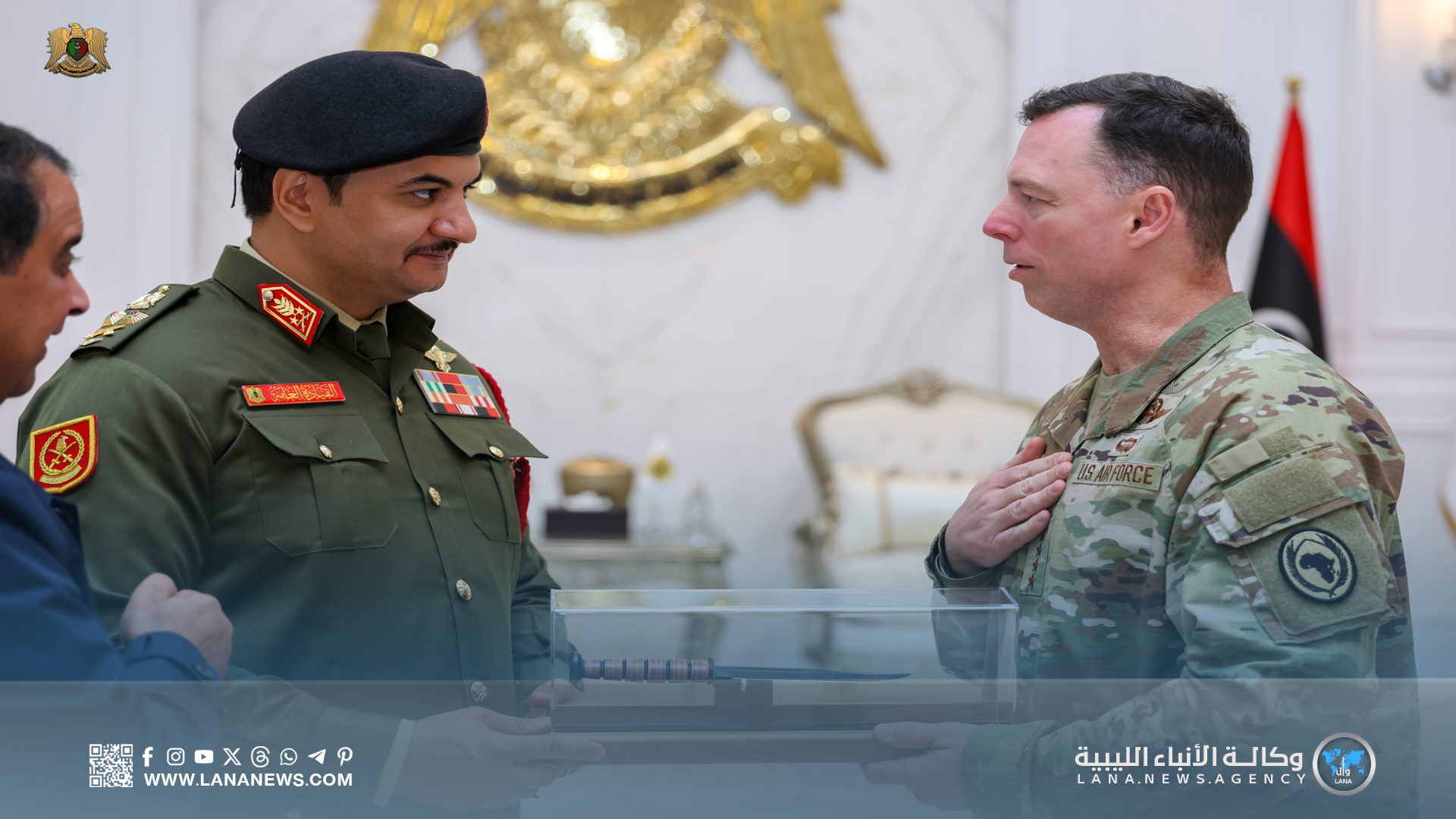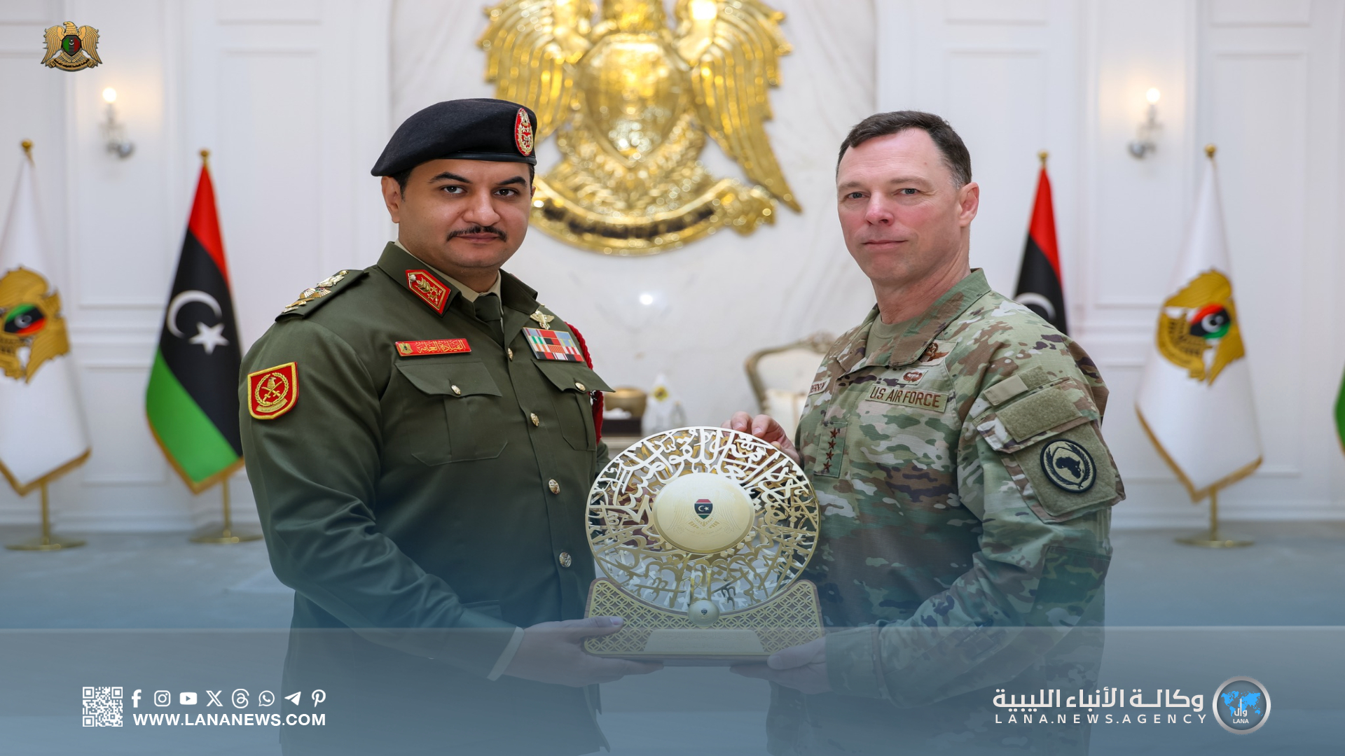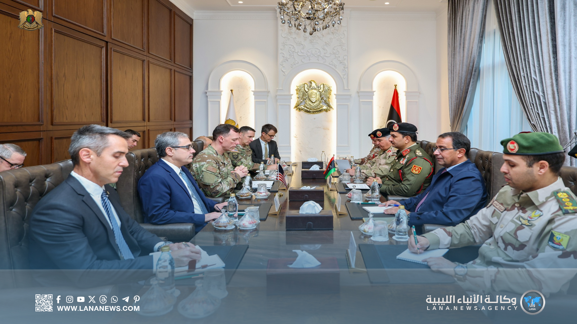 كما بحث الجانبان سُبل تطوير التعاون العسكري بين القيادة العامة وقيادة أفريكوم، بما في ذلك برامج التدريب المشترك لتعزيز قدرات القوات المسلحة، إلى جانب متابعةِ مِلفِ رفع الحظر المفروض على تسليح القوات المسلحة الليبية.