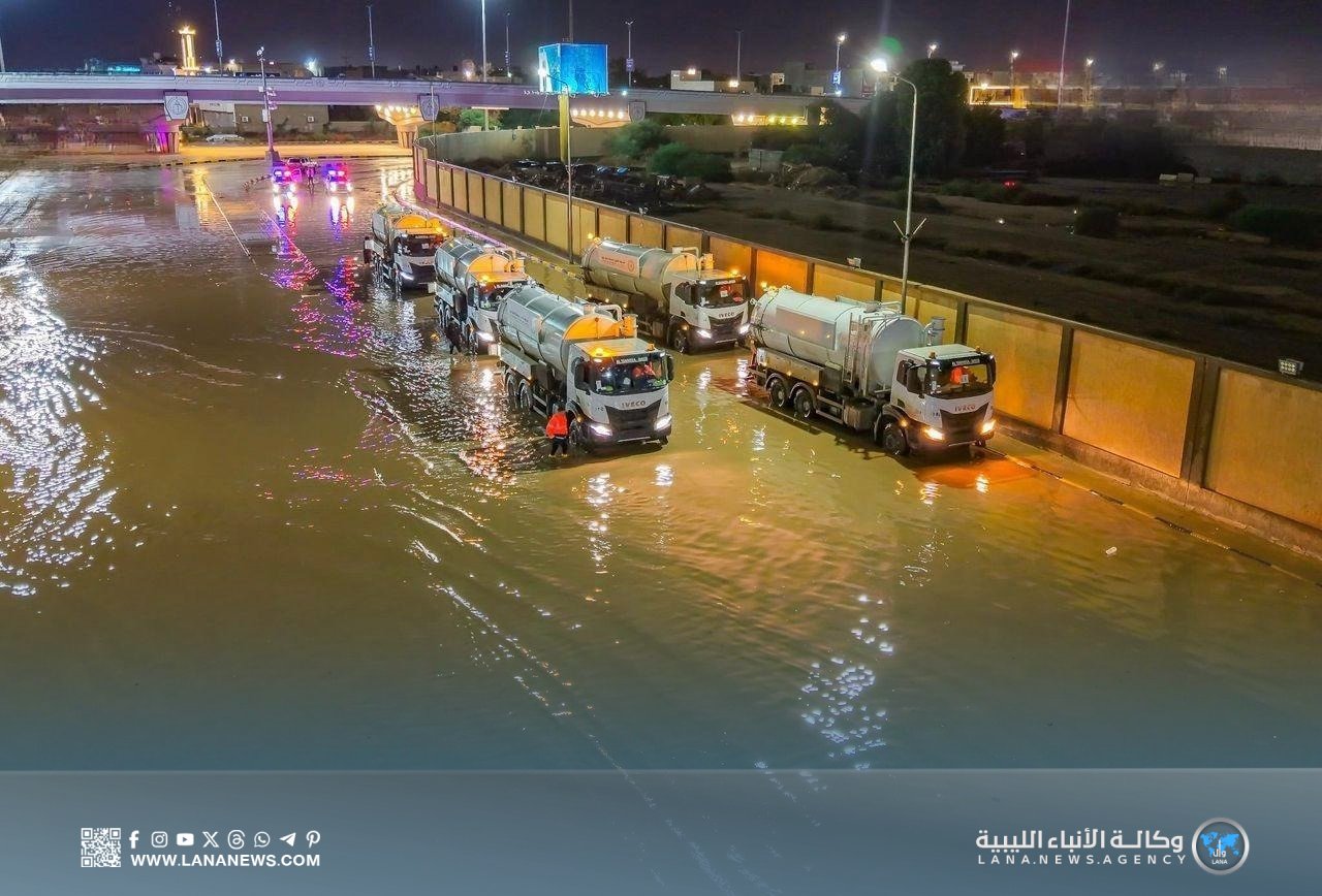 وكانت مدينة بنغازي قد شهدت أمس الجمعة هطول كميات كبيرة من الأمطار أسفرت عن تجمعات كبيرة للمياه في الأحياء والشوارع وداهمت بعض البيوت في بعض الأحياء الشعبية التي تعاني من بنية تحتية قديمة ومتهالكة.
