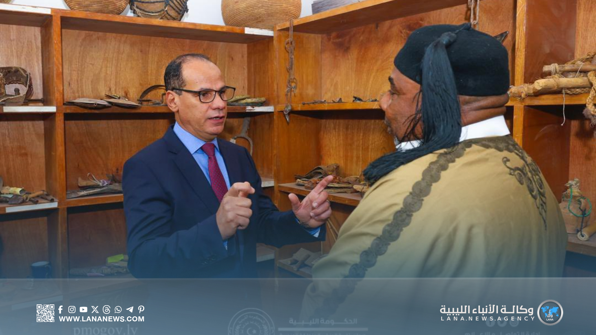 إذ كان في استقبال نائب رئيس الحكومة، مدير المركز، أمبارك محمد السقاط، الذي استعرض مهام المركز وأهدافه، مُؤكدًا أهميته في حفظ الذاكرة الثقافية والموروث الاجتماعي، وتعريف الجمهور بالتراث الشعبي المحلي على المستويين الوطني والدولي.