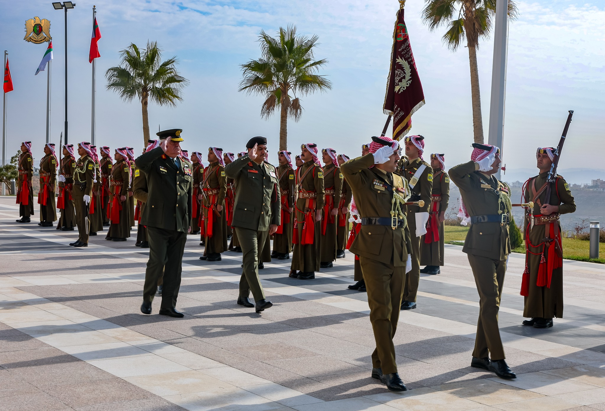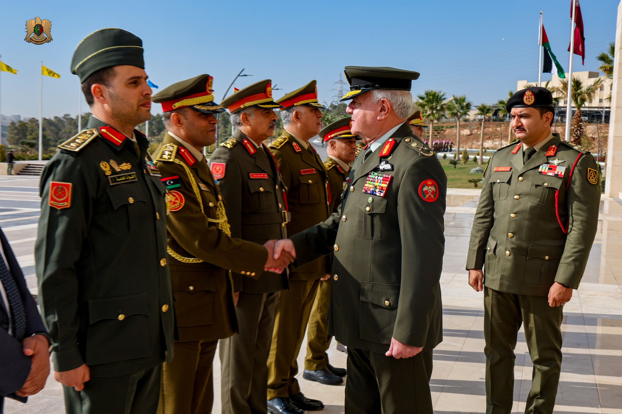 ونقل الفريق أول ركن صدام حفتر خلال مراسم استقباله تحيات وتقدير القائد العام القوات المسلحة المشير أركان حرب خليفة حفتر إلى جلالة الملك عبد الله الثاني ابن الحسين، ملك المملكة الهاشمية الأردنية، وإلى الشعب الأردني الشقيق، مؤكدًا على عمق العلاقات والروابط الثنائية بين البلدين والشعبين الشقيقين.