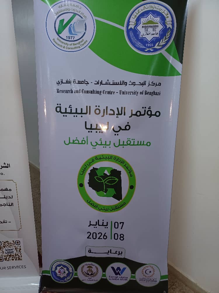 بنغازي 07 يناير 2026 (الأنباء الليبية) ـ انطلقت اليوم بقاعة مركز البحوث والاستشارات بجامعة بنغازي أعمال مؤتمر «الإدارة البيئية في ليبيا… مستقبل بيئي أفضل»، الذي ينظمه المركز على مدى يومين، بمشاركة نخبة من الأكاديميين والباحثين والمهتمين بالشأن البيئي.