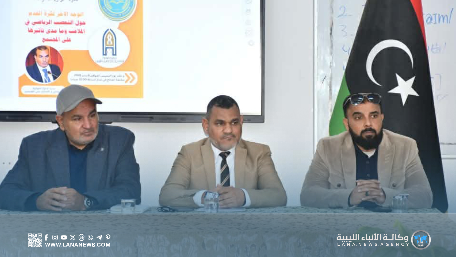 ونُظّمت الجلسة بإشراف وتنظيم جمعية الإعلاميين الرياضيين الليبيين، وبمشاركة النقابة العامة للصحفيين والإعلاميين، وبالتعاون مع قسم الإعلام بكلية الآداب – جامعة درنة، وأدار محاورها الإعلامي الرياضي علي النويصري، وسط حضور لافت من الأكاديميين والإعلاميين والطلبة والمهتمين بالشأن الرياضي.