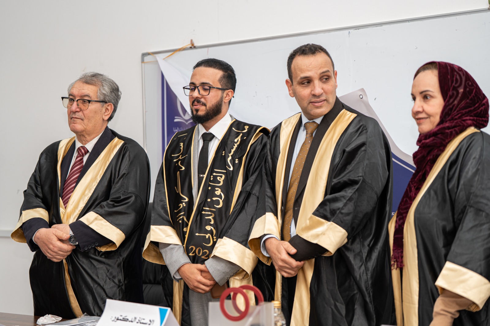 وفي ختام المناقشة، وبعد تداول علمي مستفيض، أقرت لجنة المناقشة إجازة الرسالة دون أي تعديلات، في تأكيد واضح على تميّز الباحث، وجودة العمل الأكاديمي، ورصانة المنهج المتبع، ودقة المعالجة القانونية لموضوع يُعد من أكثر الملفات تعقيدًا وحساسية على الساحة الليبية.