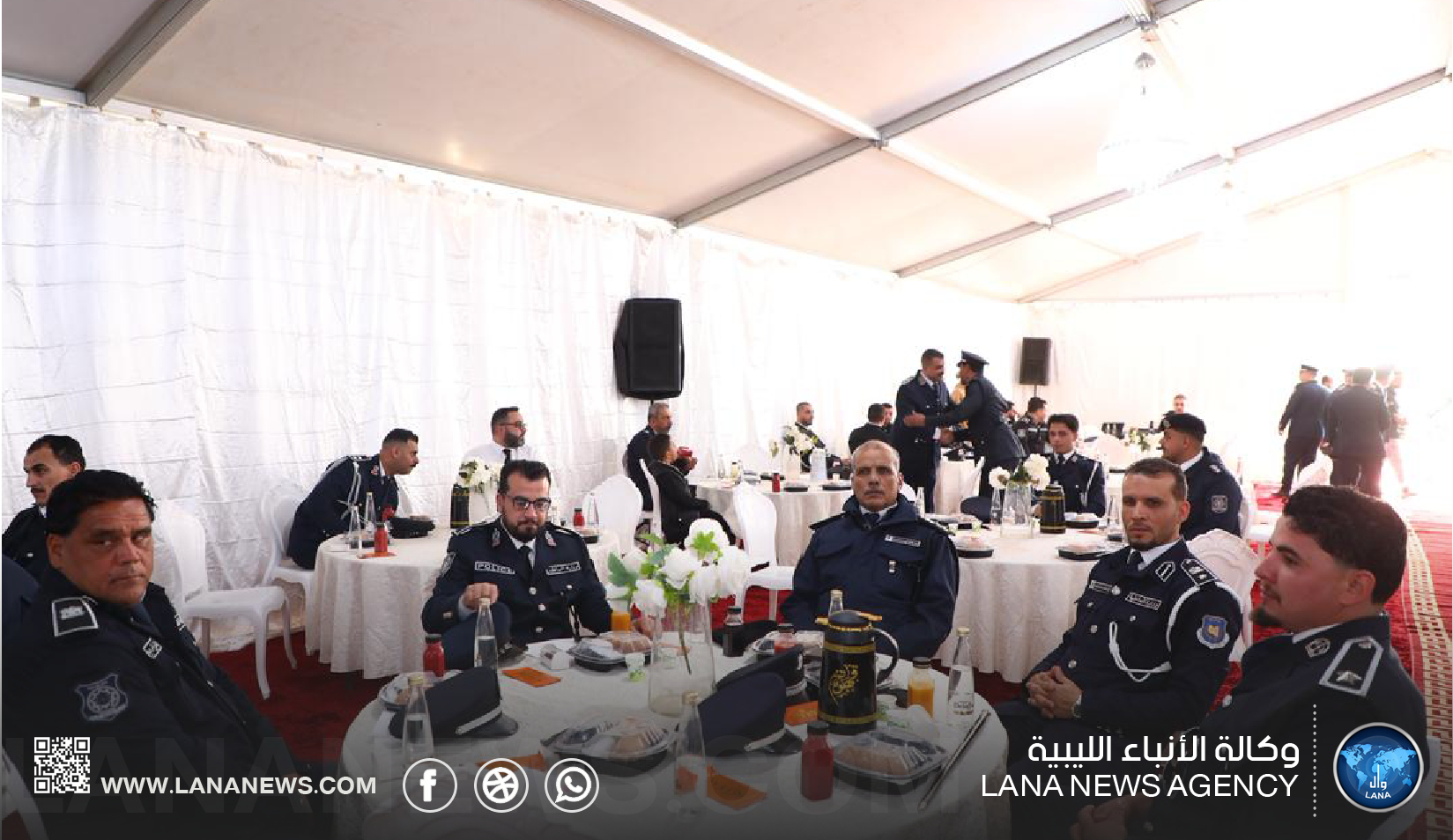 جاء ذلك خلال مراسم معايدة رسمية بمناسبة عيد الفطر المبارك، أقيمت في مقر ديوان الجهاز بمدينة بنغازي، بحضور رئيس الجهاز اللواء صالح محمود الخفيفي ورئيس جهاز الشرطة القضائية اللواء أسامة الدرسي، وعدد من القيادات الأمنية، إلى جانب ضباط وضباط الصف ومدراء الأمن وممثلي الأجهزة الأمنية المختلفة.