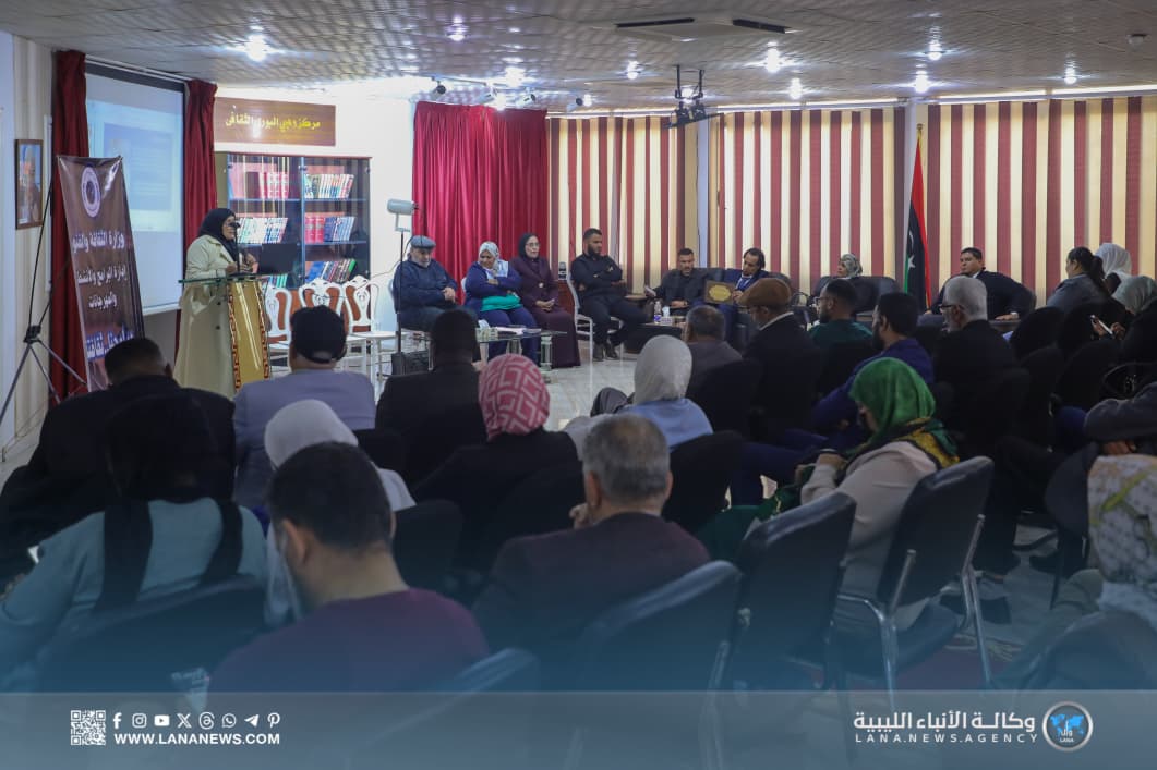 بنغازي 22 إبريل 2026 (الأنباء الليبية) – شهد رواق “محمد المهدي” بمركز وهبي البوري الثقافي،ندوة ثقافية بعنوان “العنف الأسري في المجتمع الليبي”، بمشاركة نخبة من الأكاديميين والمثقفين، وبرعاية وحضور وزيرة الثقافة بالحكومة الليبية الدكتورة صالحة الدروقي.