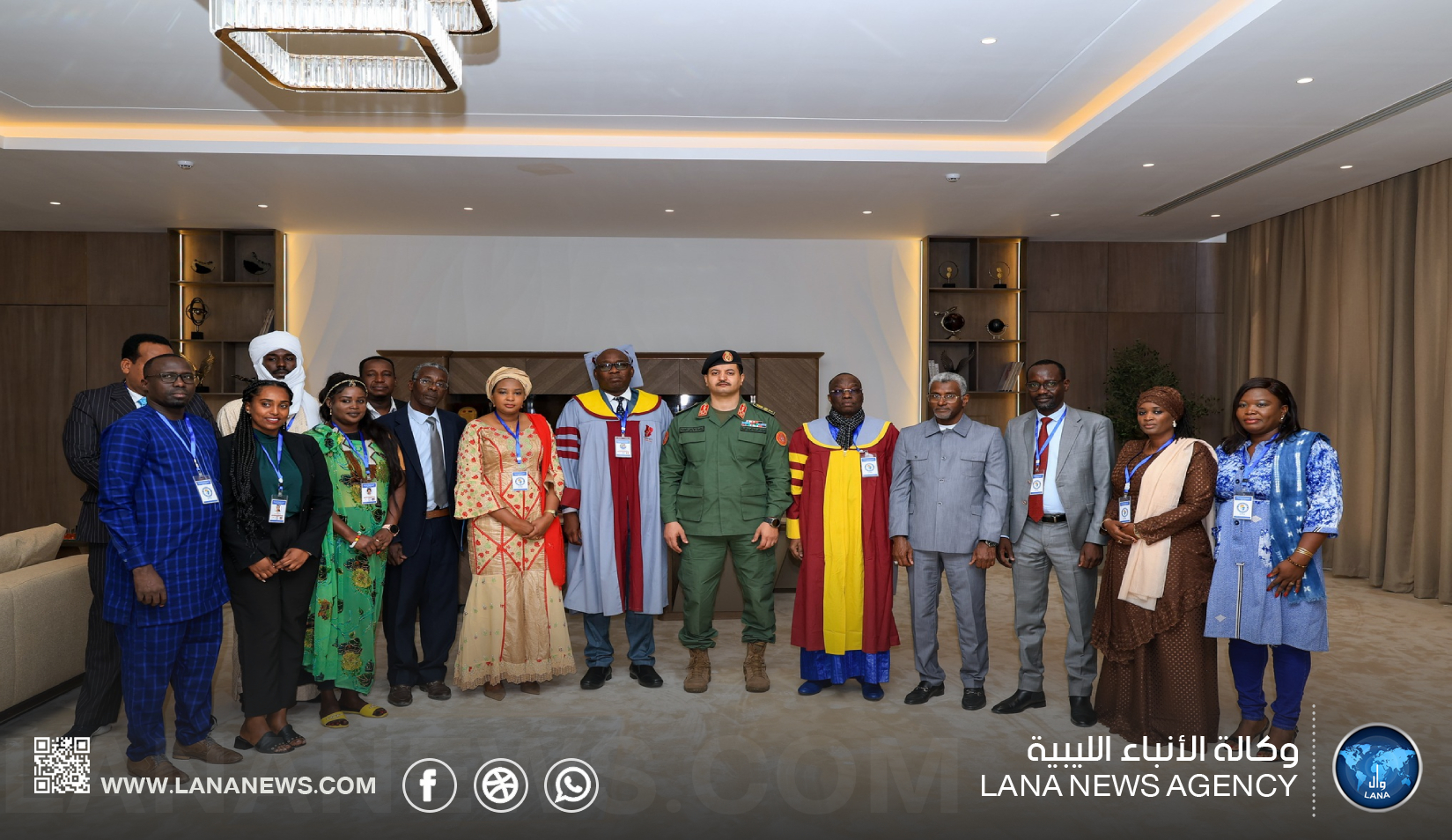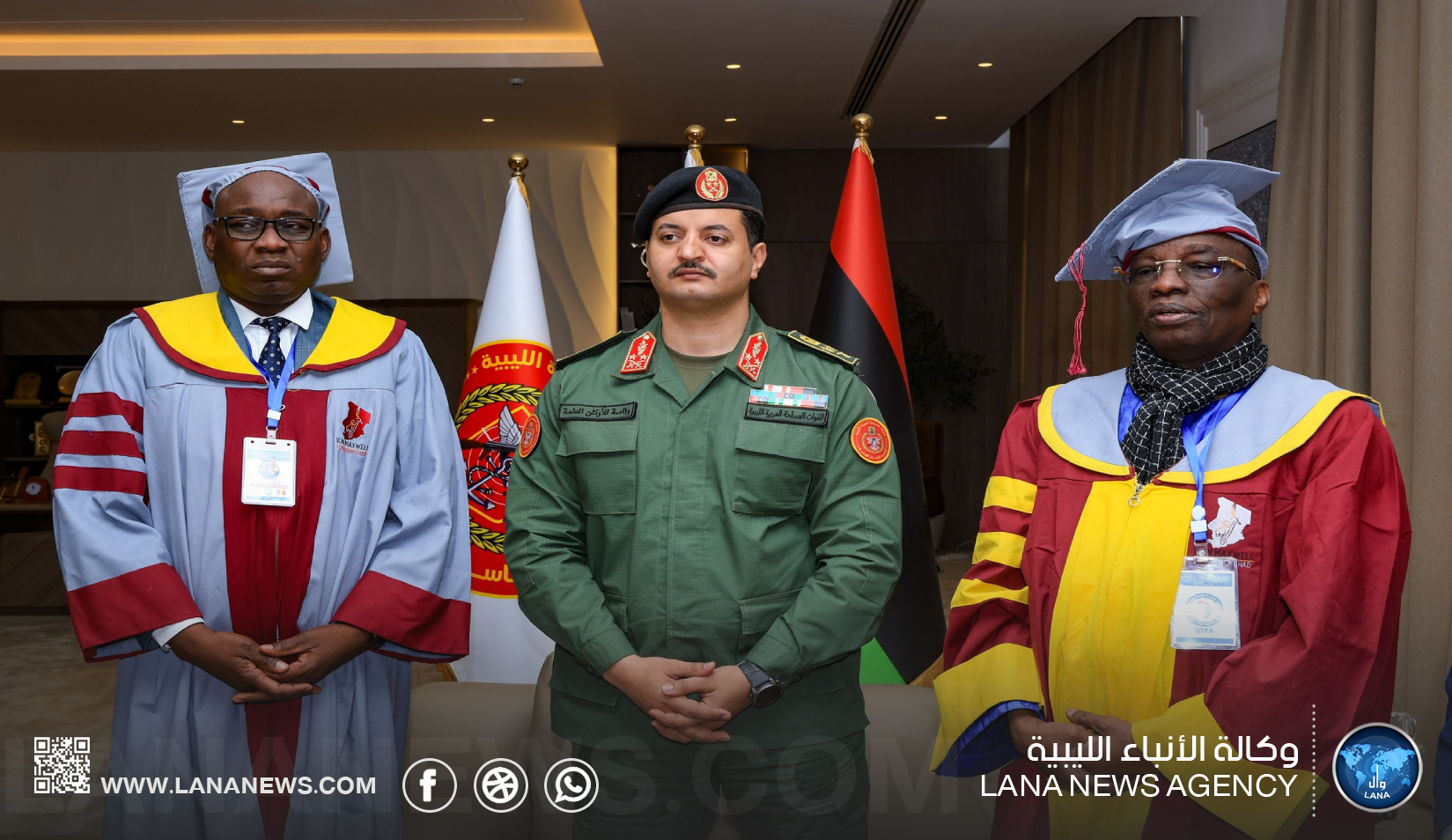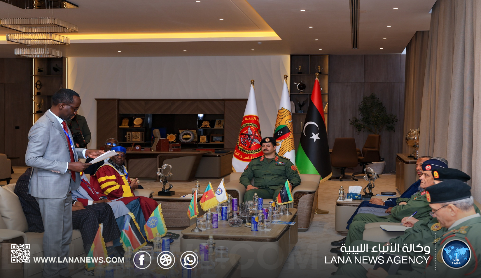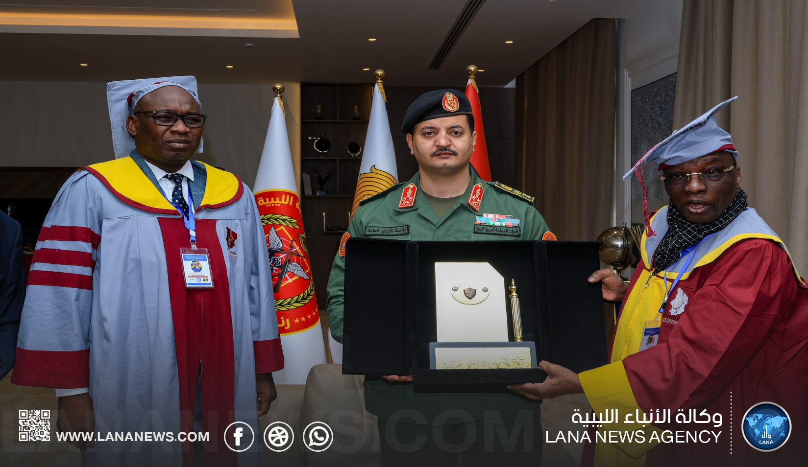 بنغازي 25 أبريل 2026 (الأنباء الليبية)- كرّم وفد دولي أفريقي، رئيس الأركان الجيش، الفريق أول ركن خالد خليفة، ومنحه جائزة السلام، خلال لقاء احتضنته مدينة المشير خليفة حفتر العسكرية، بحضورِ وفد اتحاد التلفزة الخاصة بأفريقيا (UTPA) ومُمثلين عن 12 دولة أفريقية، إضافةً إلى وزير الشؤون الأفريقية المستشار عيسى عبد المجيد.